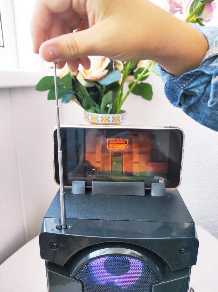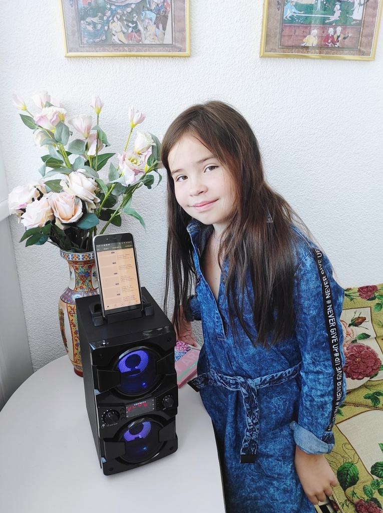 Amenda. Frumoasă coloană pentru un picnic. O săptămână mai târziu, LED-ul roșu de pe difuzorul de sus s-a stins, uneori se aprinde doar cel albastru.
