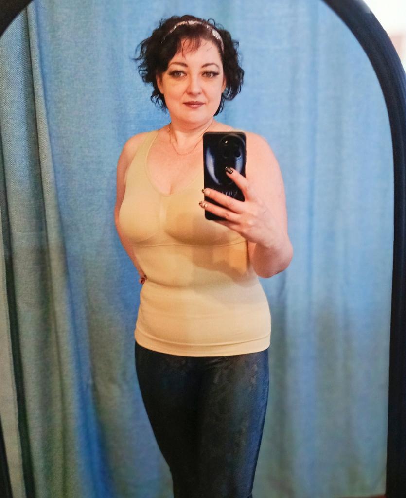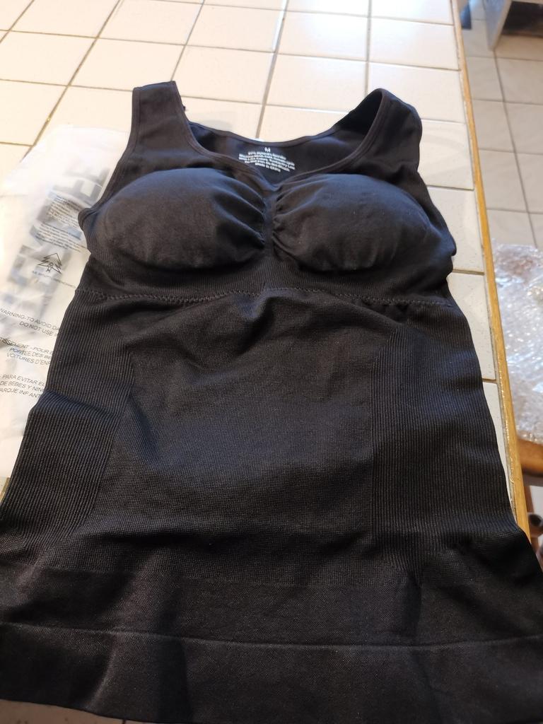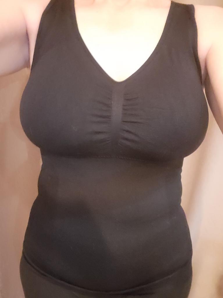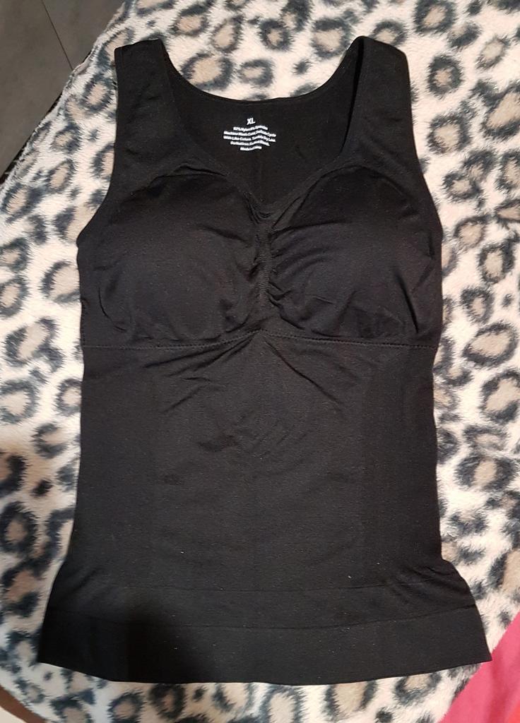 Super tricou! Aș fi putut lua o mărime mai mică, dar sunt mulțumit. Inserțiile de la cupele bustului sunt detașabile și acesta este și un plus. Pliurile de pe corp nu sunt ascunse, dar sub bluze transparente va fi destul de decent. :)