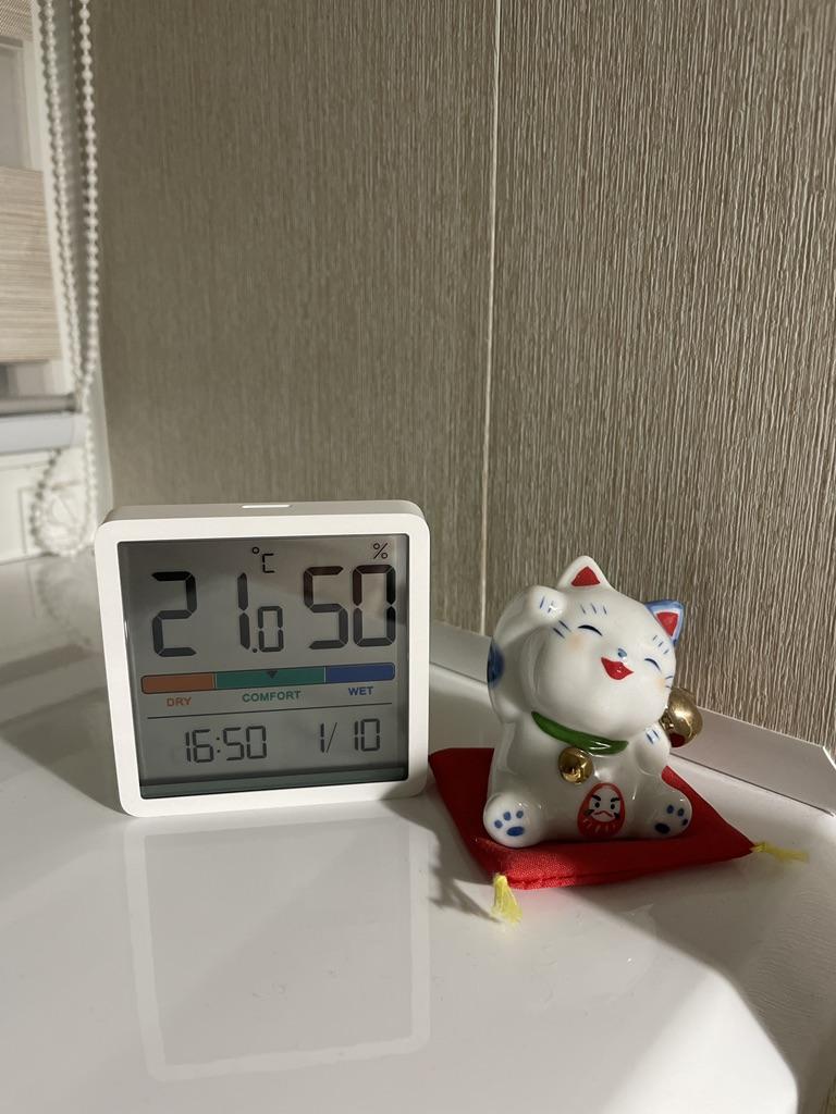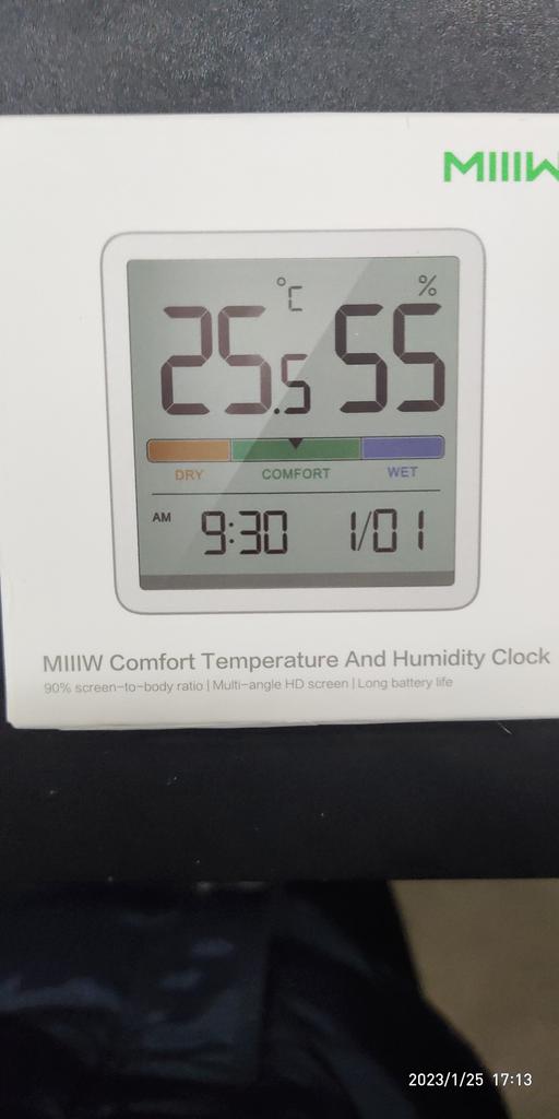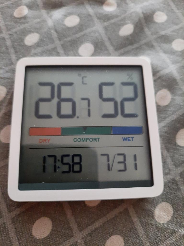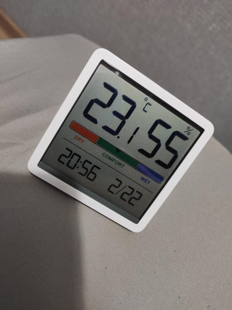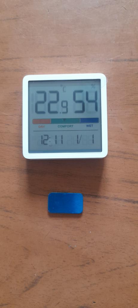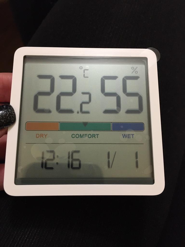Ceas frumos cu termometru și umiditate. Practic pentru baie, de exemplu. Când am schimbat afișajul temperaturii, desigur, mă refeream la Fahrenheit și nu la Faraday. 🙈😅