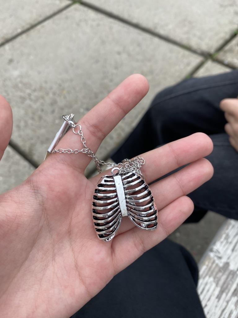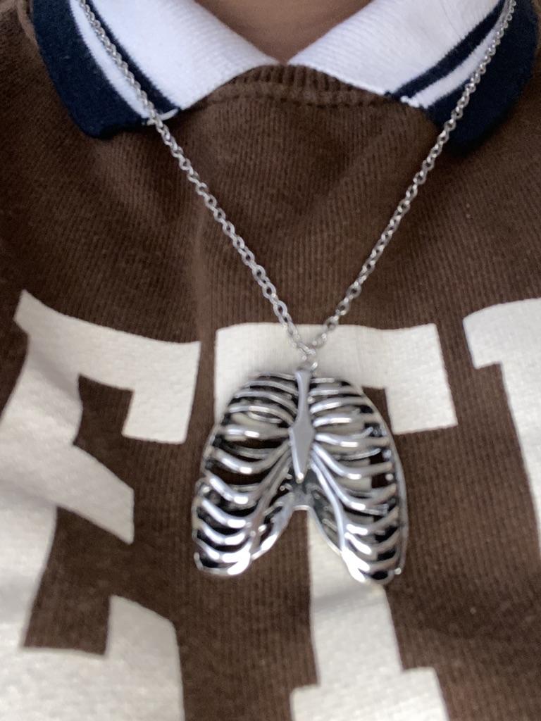 Colier de modă gotic Vinage cu schelet anatomic inimă Goth Punk Colier cu pandantiv retro unic Bijuterii pentru bărbați/femei