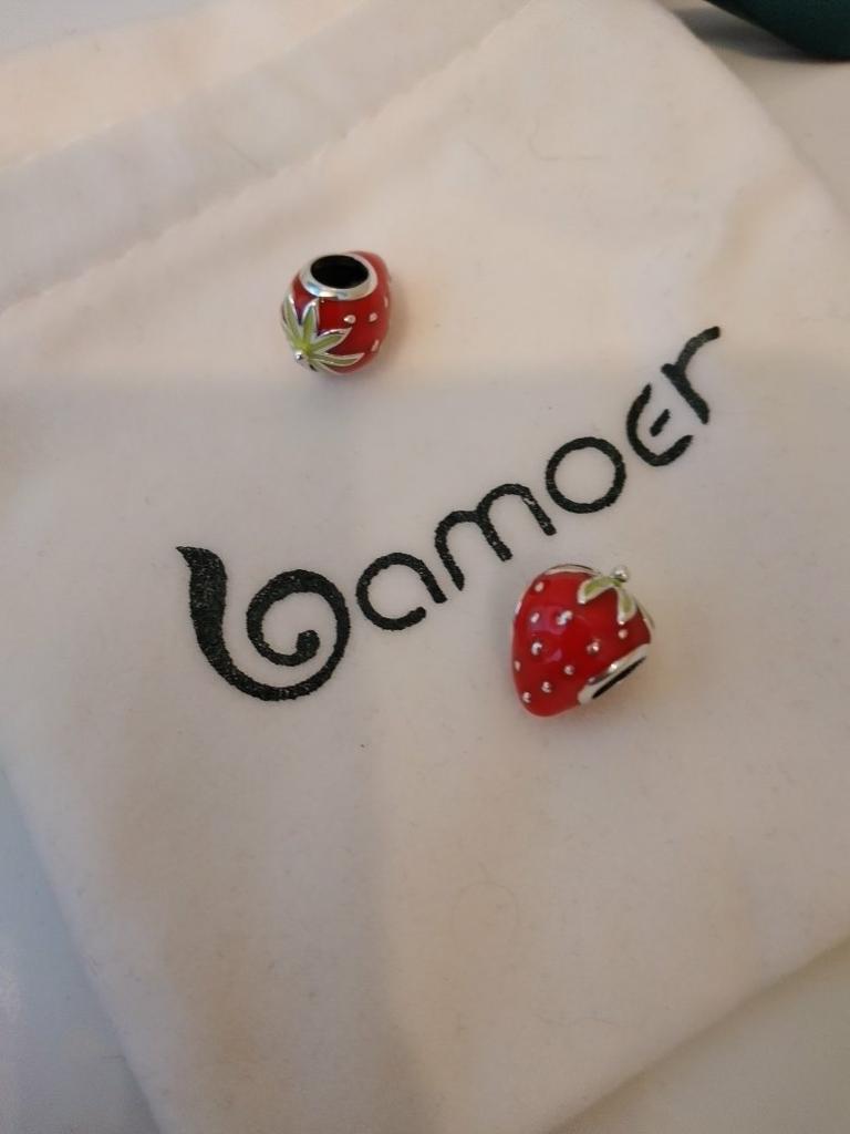 BAMOER Încântător de căpșuni, fructe dulci, email roșu, pandantiv cu farmec din argint 925 pentru brățară originală, brățară, bijuterii fine
