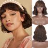 LISI HAIR Perucă cu breton scurt pentru păr drept, perucă pentru femei cu breton sintetic, perucă maro închis pentru ziua de petrecere, până la umeri