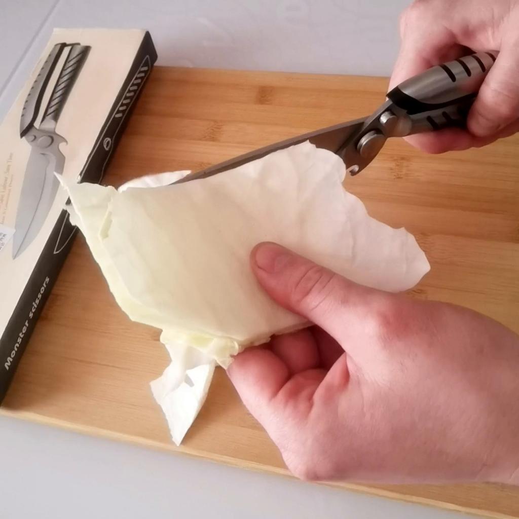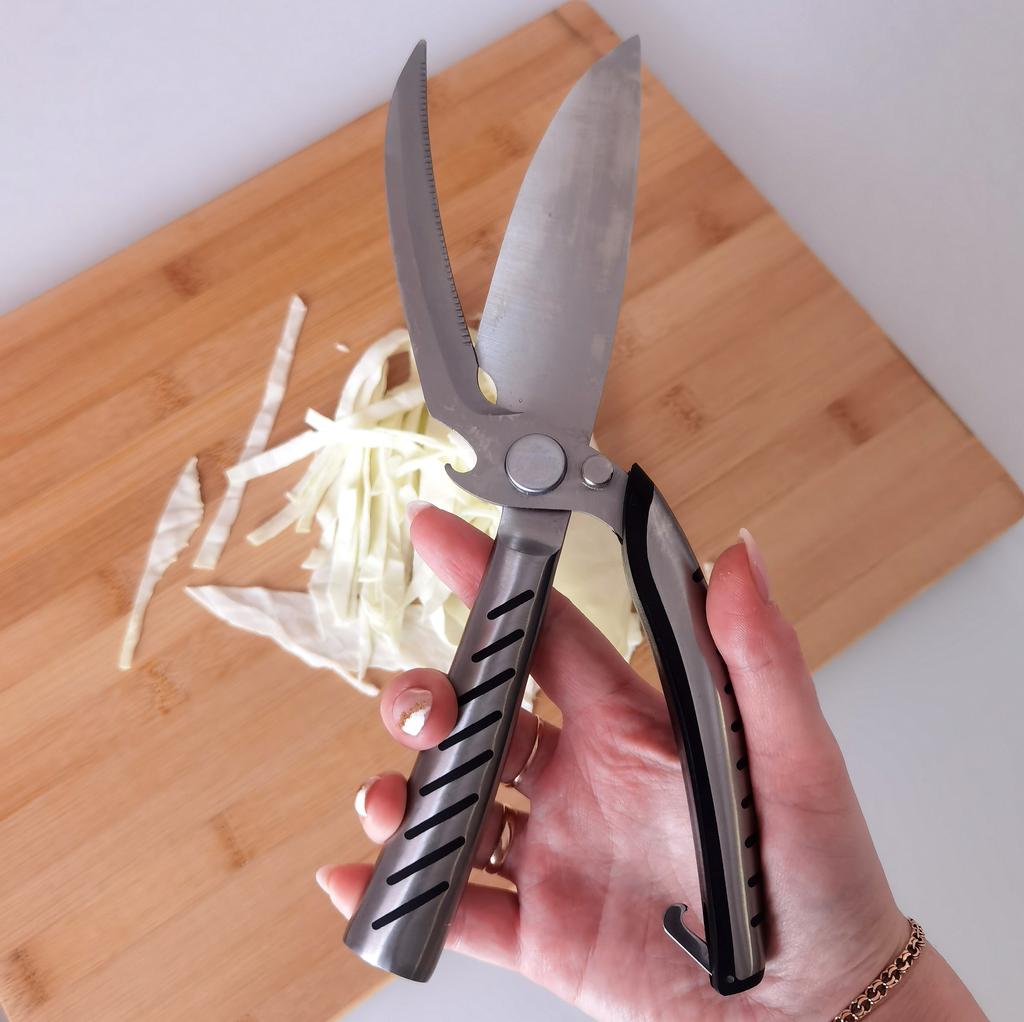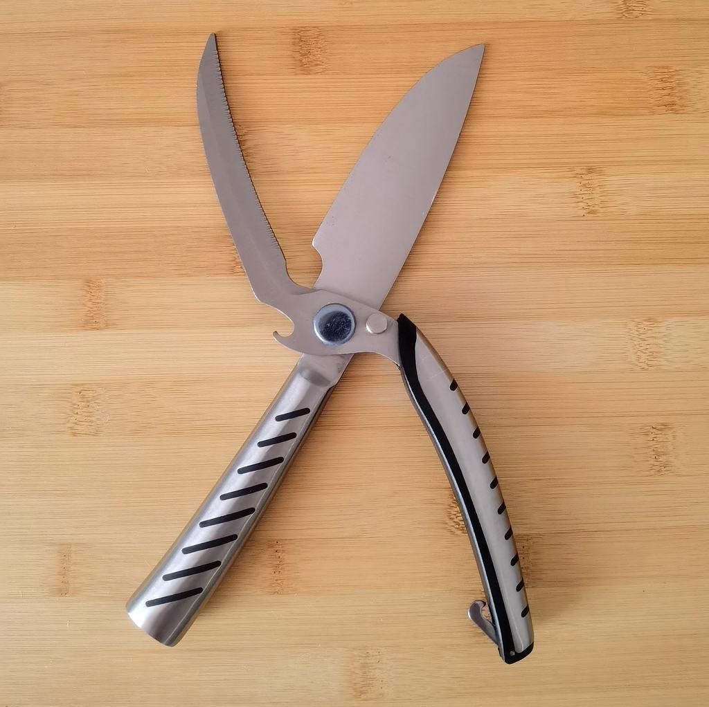 Această foarfecă poate fi folosită pentru a tăia orice. Taie oasele păsărilor de curte și ale peștelui.