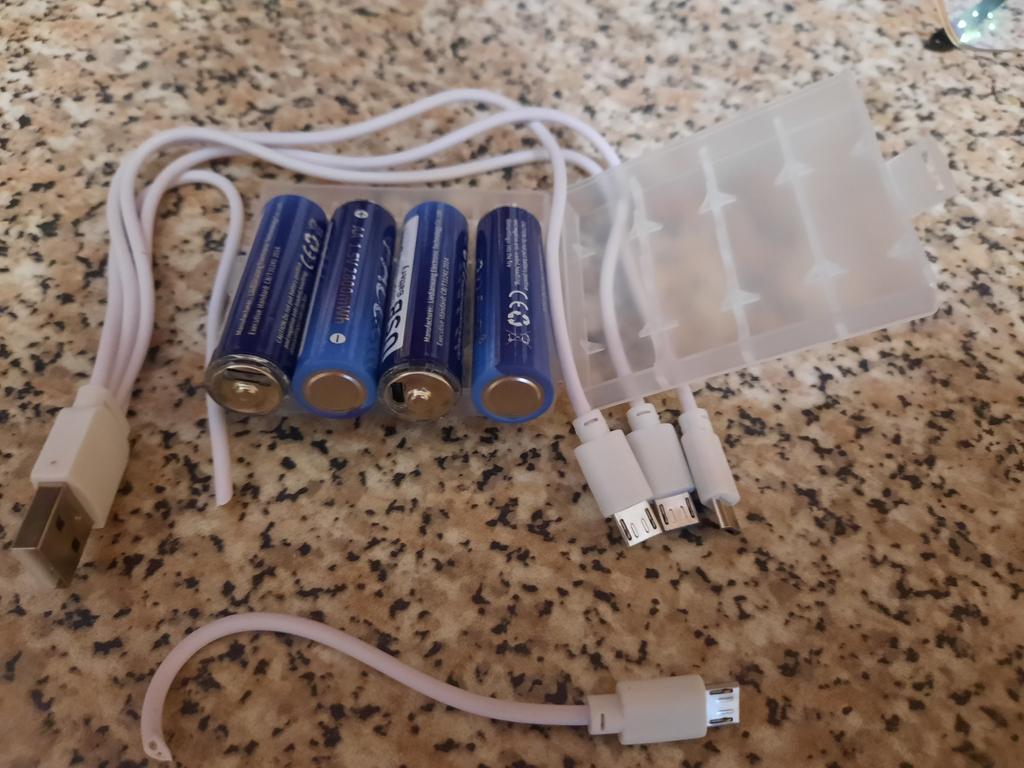 Setul include un cablu și 4 microUSB pentru a încărca toate bateriile în același timp. Capacitatea declarată este de 2800 mWh. Nu există nicio modalitate de a verifica. Livrarea este surprinzator de rapida, nici nu a durat 2 saptamani. Până acum, bine