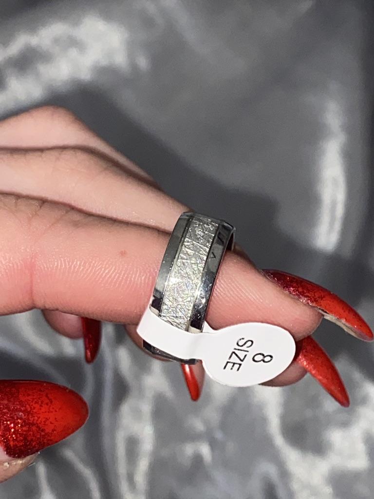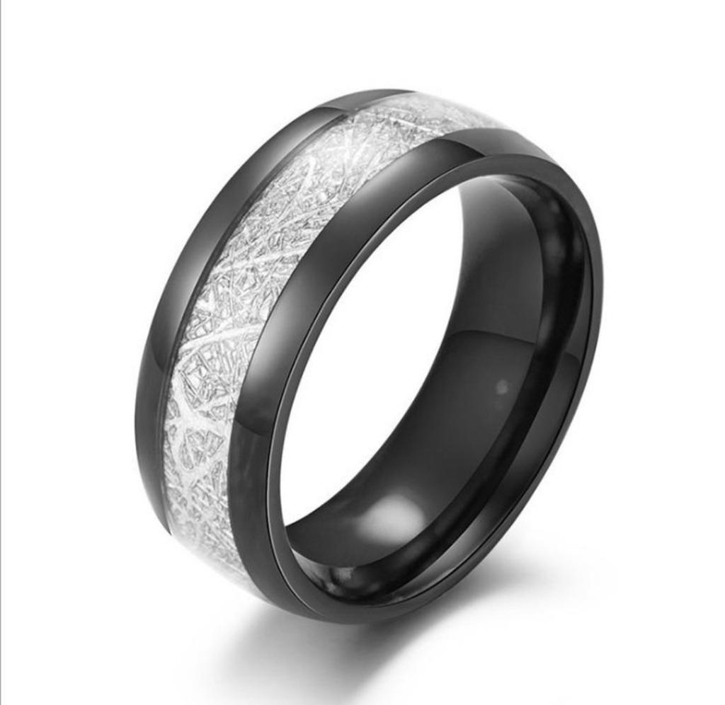8mm lățime model de piatră de meteorit incrustat argintiu inel din oțel tungsten cuplu bijuterii de logodnă