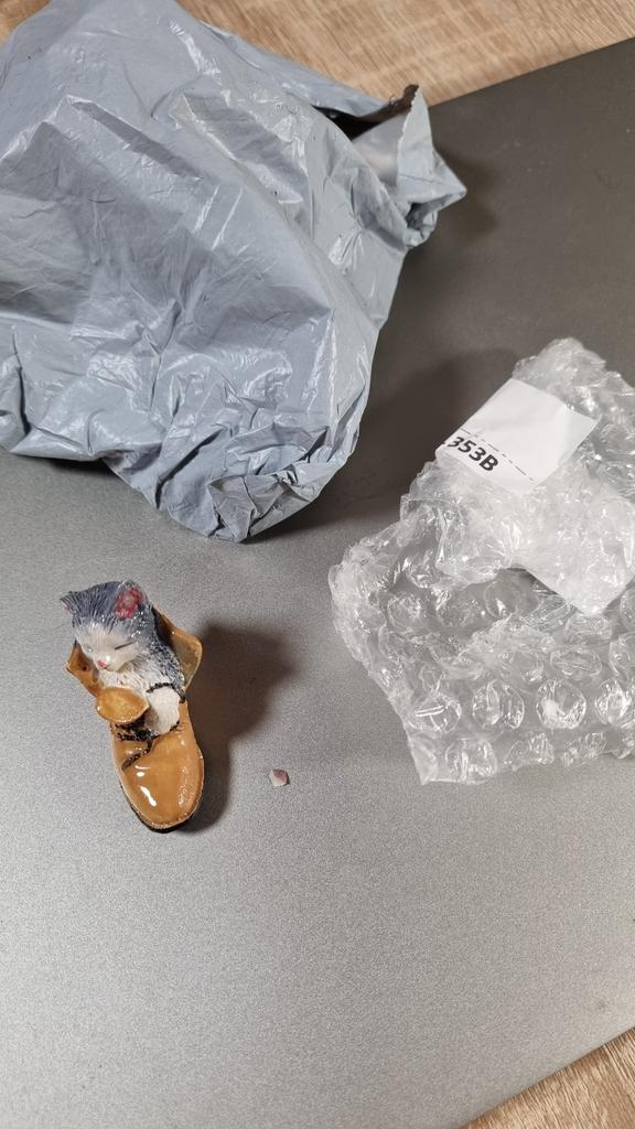 O stea a fost eliminată pentru ambalaj prost. A fost ambalat doar într-o folie cu bule, urechea a fost deteriorată.