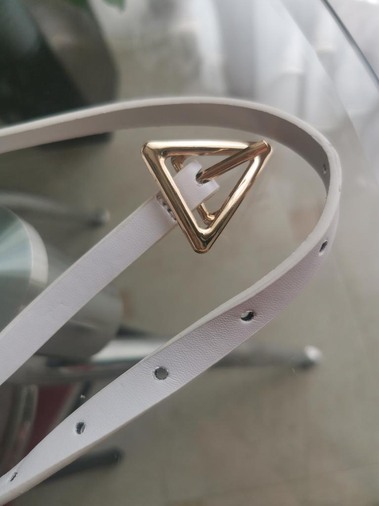 Calitatea curelei este bună - atât accesoriile, cât și înlocuitorul de piele sunt excelente. Culoare alba ca zapada, curea destul de groasa - 3 mm, lungime - 110 cm, latime - 1 cm, catarama triunghiulara - 3,4x4,4 cm.Mi-a placut foarte mult cureaua. Mulțumiri vânzătorului și mulțumiri lui Joom ❤️.