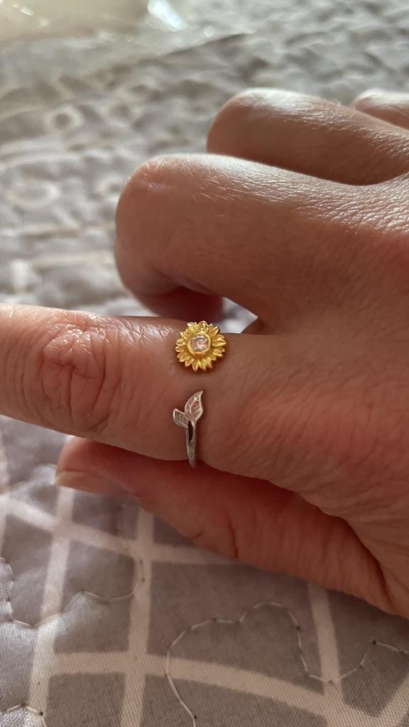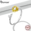 BAMOER Inel ajustabil în formă de floare de soare, din argint 925, zircon strălucitor, pentru femei, bijuterii fine elegante