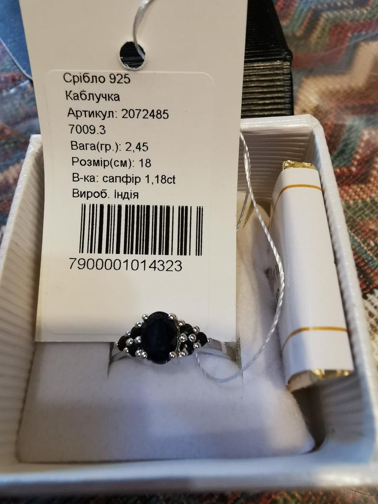 серебряное кольцо с натуральным сапфиром 1.175ct, вес изделия 2,46 гр