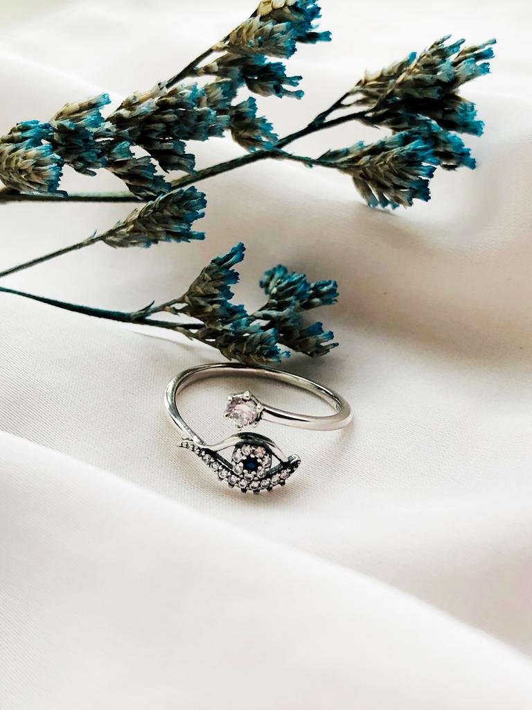 BAMOER Inel ajustabil cu ochi de demon, argint 925, pavaj delicat, zircon, pentru femei, bijuterii fine