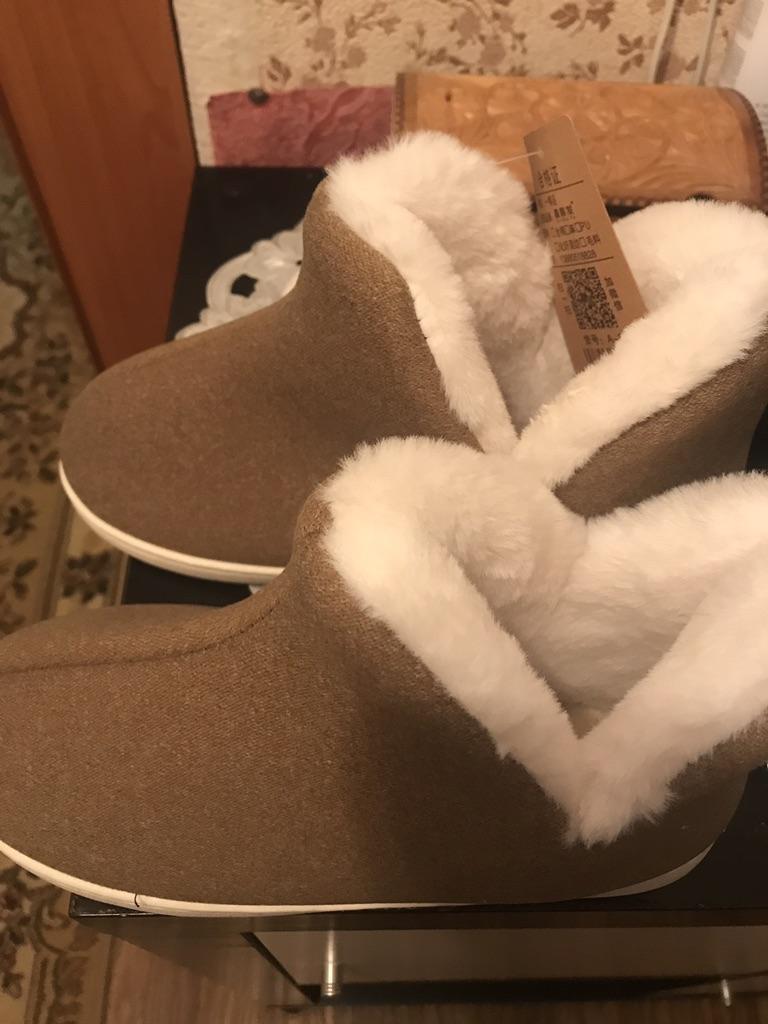 Ei bine, bineînțeles nu bumbac, dar moale, cald, fotografia este adevărată, dimensiunea corespunde grilei. Se așează bine pe picior, nu zboară. Ca cizme acasă în sezonul rece - exact ceea ce aveți nevoie. Vă recomand