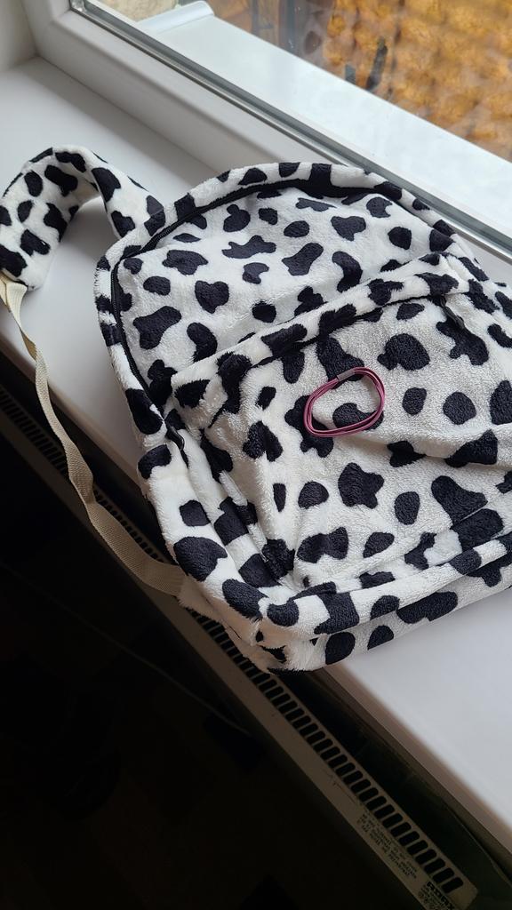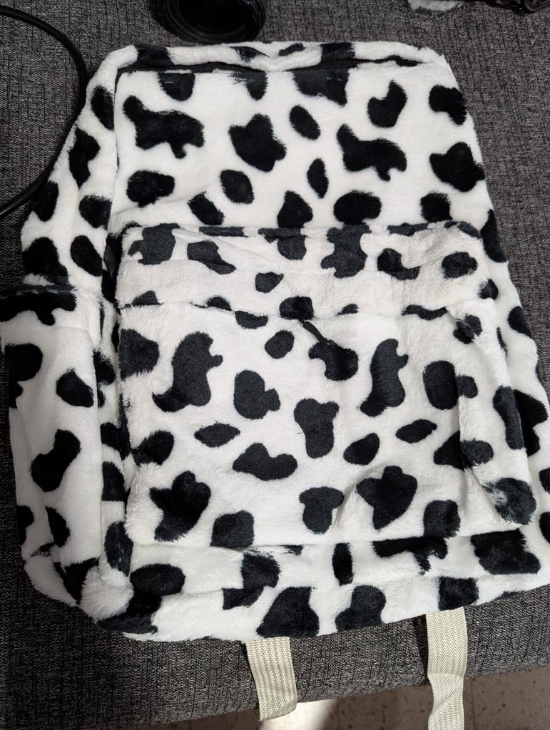 Yogodlns Rucsac de pluș de modă pentru femei Geantă de școală pentru fete de capacitate mare Rucsac drăguț cu model de vacă Rucsac de iarnă nou de călătorie