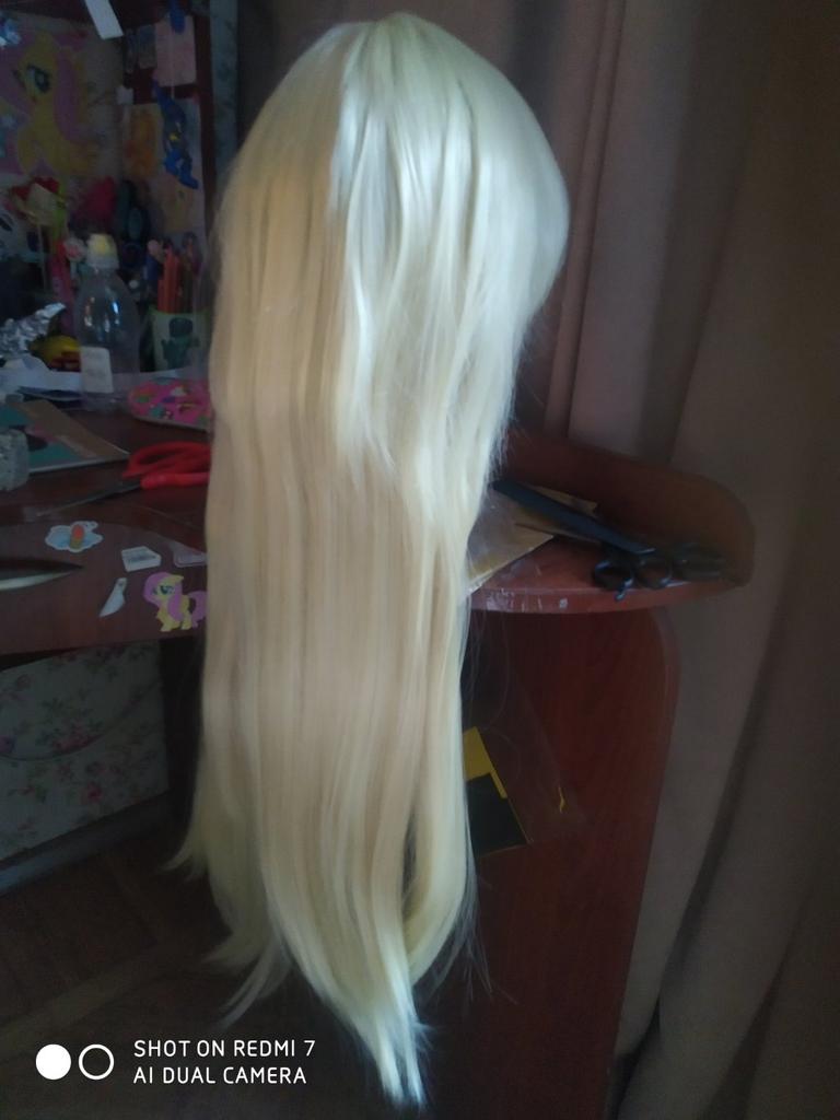 Frumoasa peruca pentru cosplay. Se ține bine și nu se încurcă prea mult. Culoare strălucitoare bogată. Lungime 75 cm de la coroana. Nu am încercat încă să-l instalez. Nu deosebit de rar, dar mi-ar plăcea să fie puțin mai gros. Dacă trebuie să împletești coada de cal, este mai bine să cumperi un coc suplimentar.