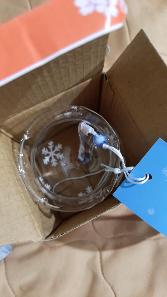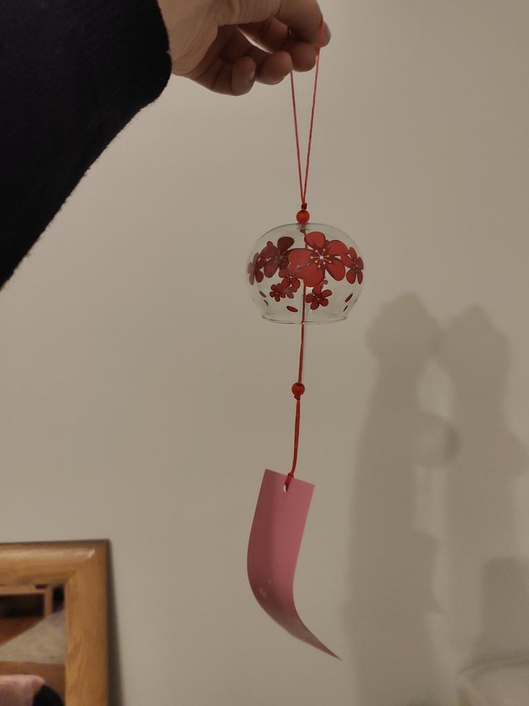 Îmi place! Arata exact ca in poza ❤ Tăietura de pe marginea clopotului de sticlă este puțin accidentată, dar chiar nu se observă de la nicio distanță. Vine într-o cutie drăguță și, deși stratul suplimentar de folie cu bule este apreciat - a venit doar într-o pungă de plastic, așa că nu l-ar fi protejat de zdrobire. A fost doar noroc pur 😬 Aproximativ. Dimensiuni: 📦Cutie - 7cm x 7.5cm 🎐Clopotel - 7cm diametru 🔖Card - lungime 13 cm 🖤🐠Recomand🐠🖤