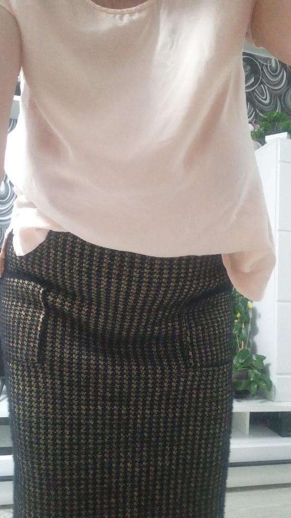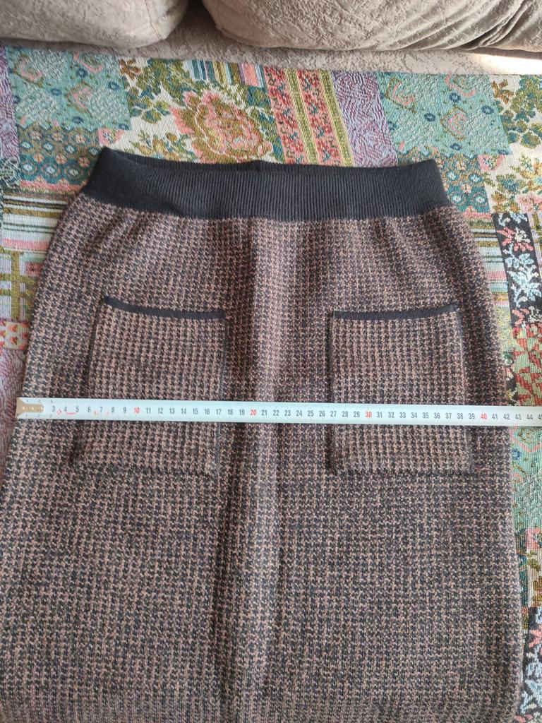 Frumoasă fustă din lână în carouri, cu buzunare în față, o recomand cu căldură
