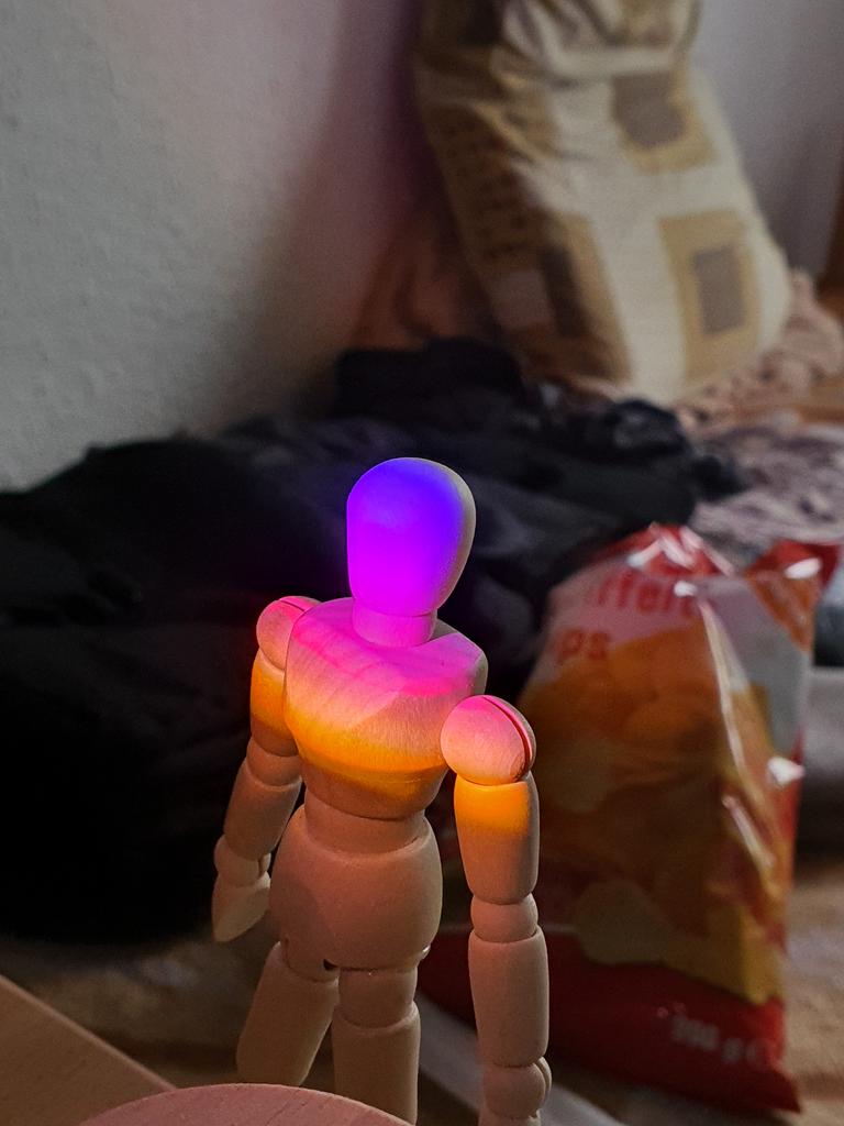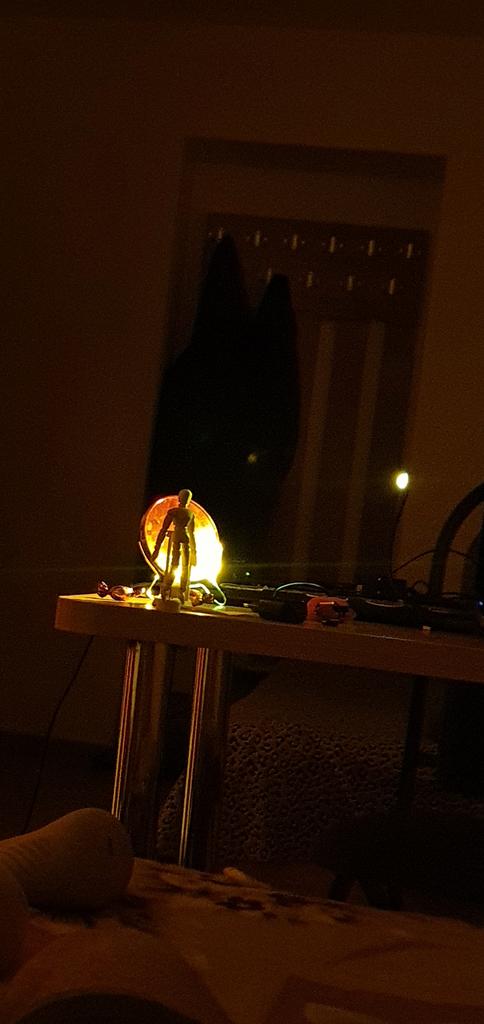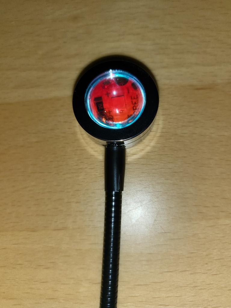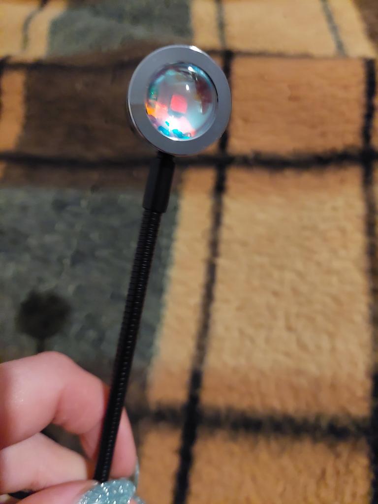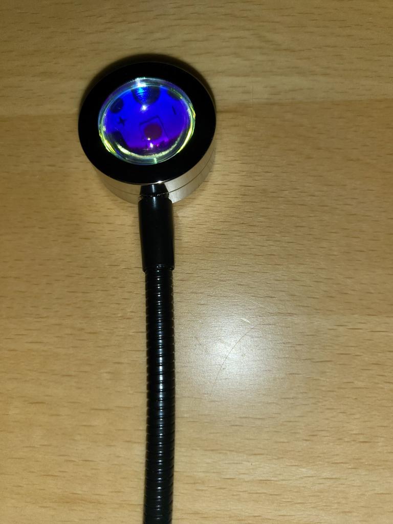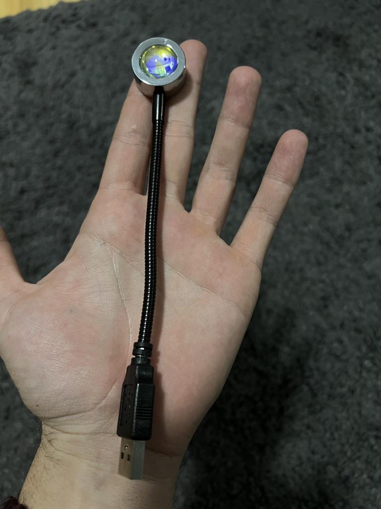 Frumos truc.🥰 Iluminare atmosferică, nu la fel de intensă ca în imagine, dar ok pentru preț👍 Manopera arată de înaltă calitate, gâtul flexibil este stabil și menține poziția.