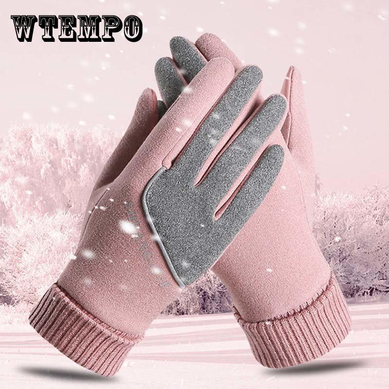 Mănuși pentru femei, iarnă, caldă și rezistentă la frig, plus catifea, îngroșată, anti-alunecare, mănuși sport din bumbac