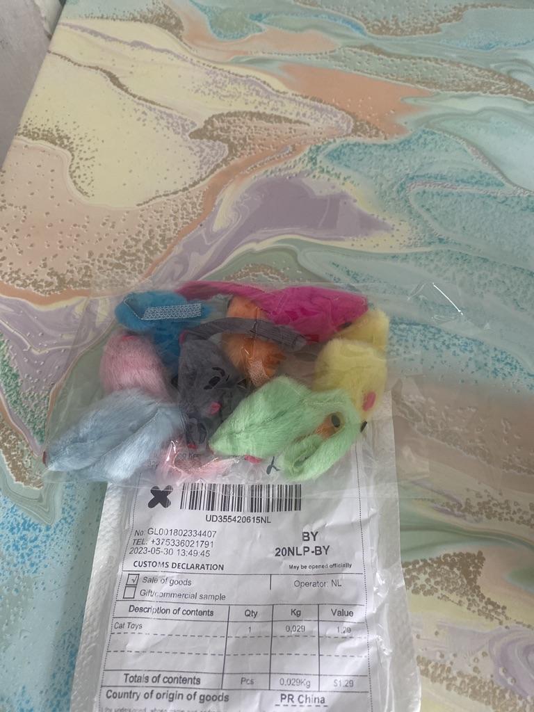 Toate cele 8 bucăți într-un pachet, în interiorul unei mingi, pisica este prevăzută cu șoareci😂