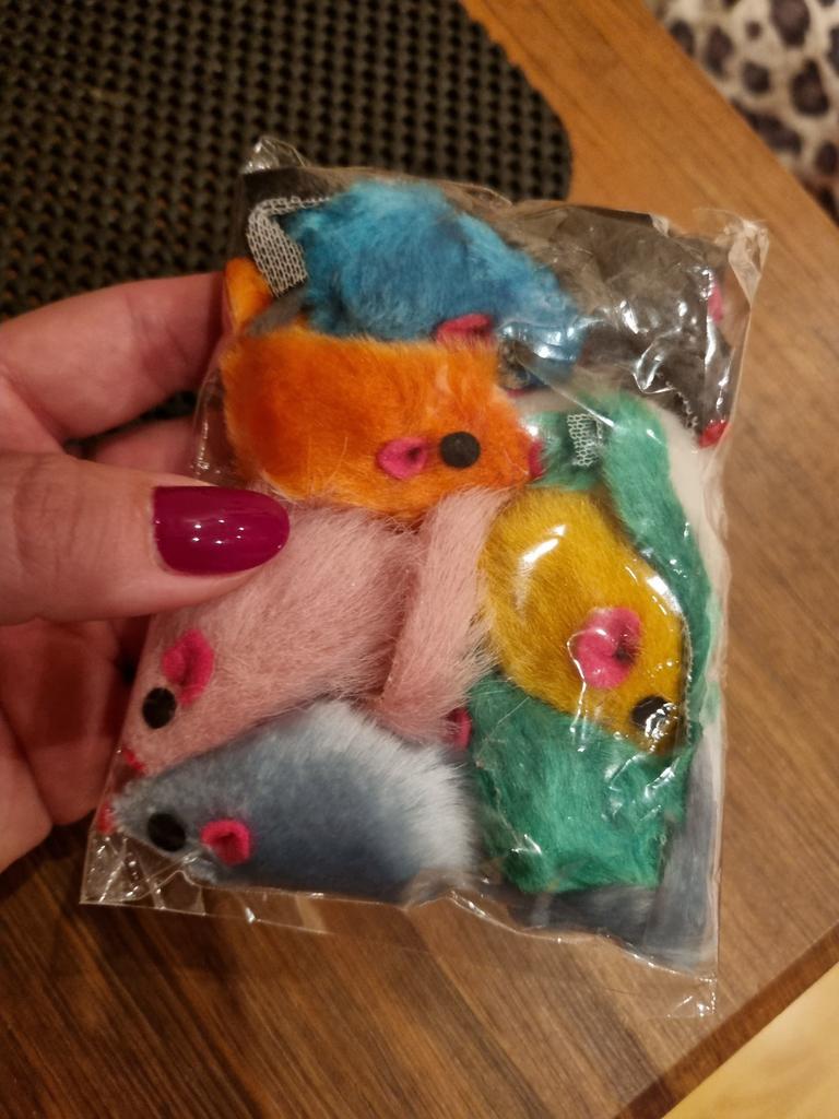 Șoarecii sunt îngrozitori. Punga conținea gunoi și pietre mici. Blana este prost lipită de bază. Se destramă, toate acoperite cu lipici. nu recomand.