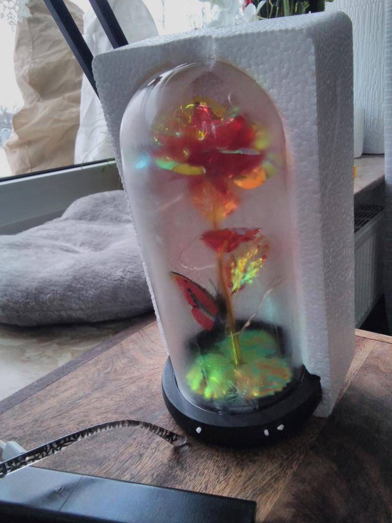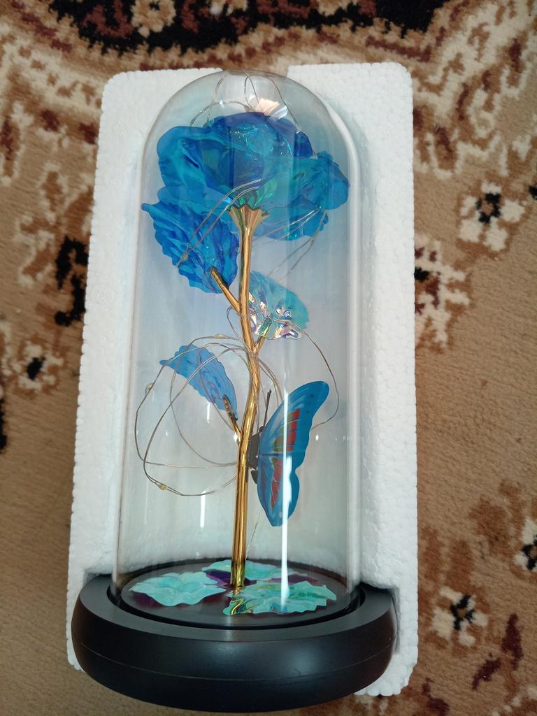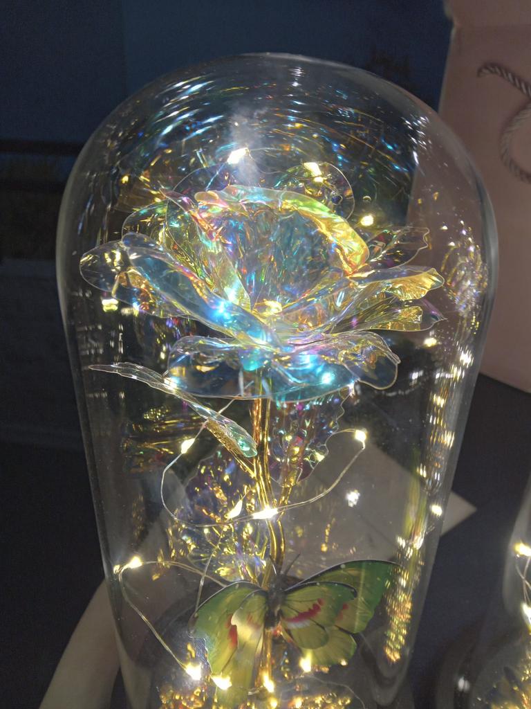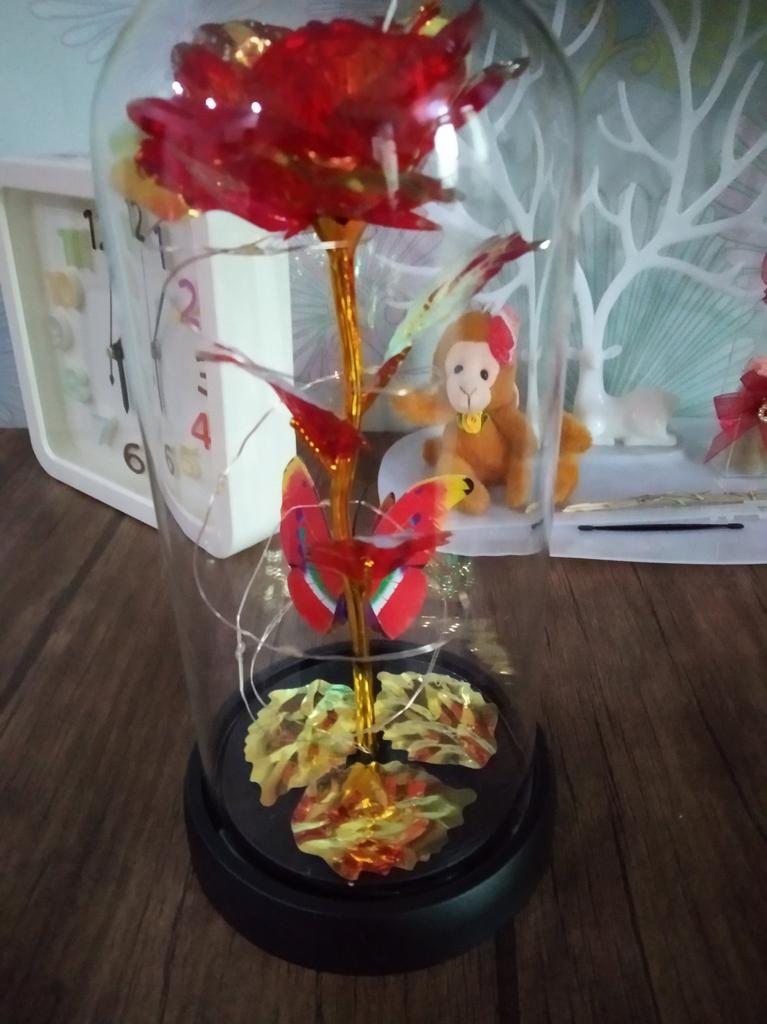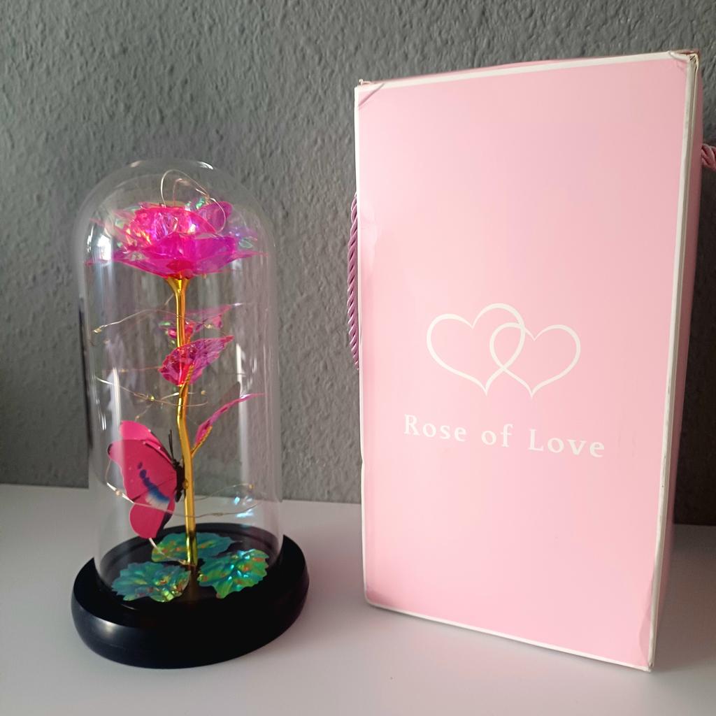 Roz 🥀 în sticlă 🫶🏽 Foarte elegant și foarte impactant! Mi-a plăcut grija ambalajului, ceea ce îl face ideal și pentru un cadou 🎁 La Rosa este foarte frumoasa, perfecta ca piesa de mobilier 💗 Se luminează și îl face și mai rafinat! Ambalajul este bine protejat si din acest motiv produsul a ajuns in stare perfecta! Culoare frumoasă și prezentare grozavă ✔️