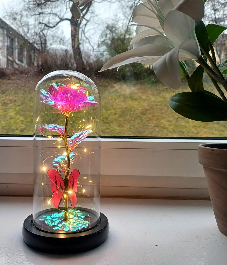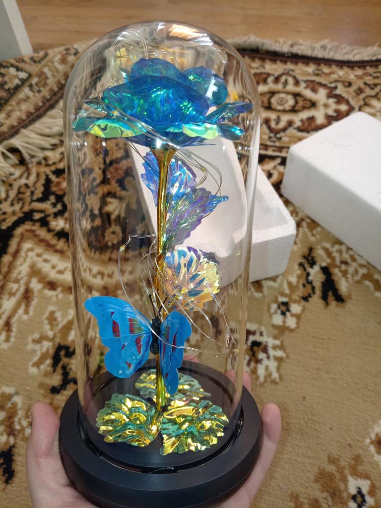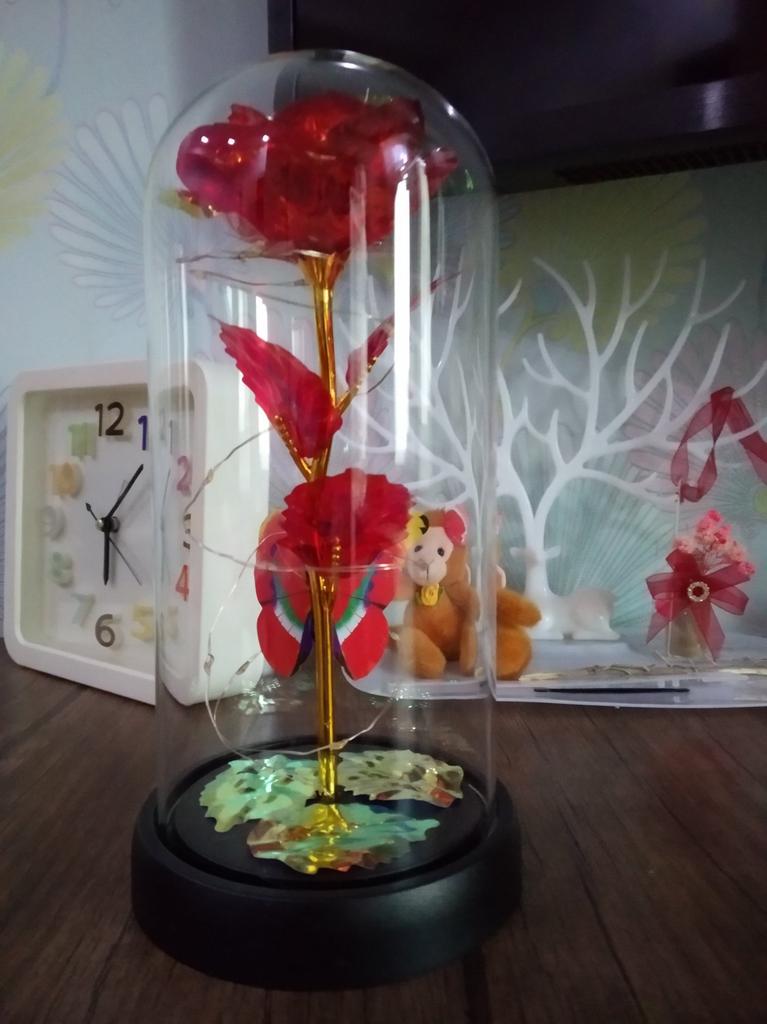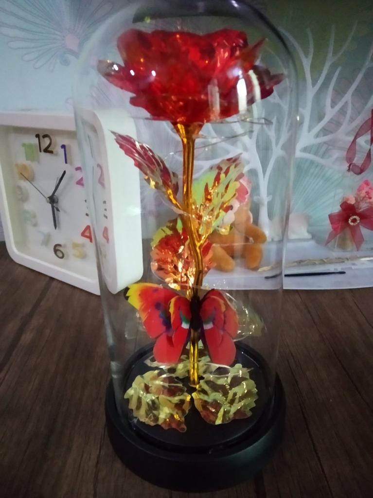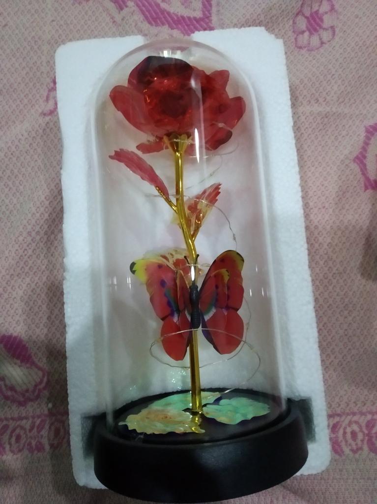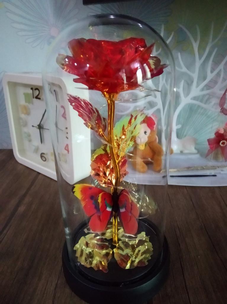 Roz 🥀 în sticlă 🫶🏽 Foarte elegant și foarte impactant! Mi-a plăcut grija ambalajului, ceea ce îl face ideal și pentru un cadou 🎁 La Rosa este foarte frumoasa, perfecta ca piesa de mobilier 💗 Se luminează și îl face și mai rafinat! Ambalajul este bine protejat si din acest motiv produsul a ajuns in stare perfecta! Culoare frumoasă și prezentare grozavă ✔️