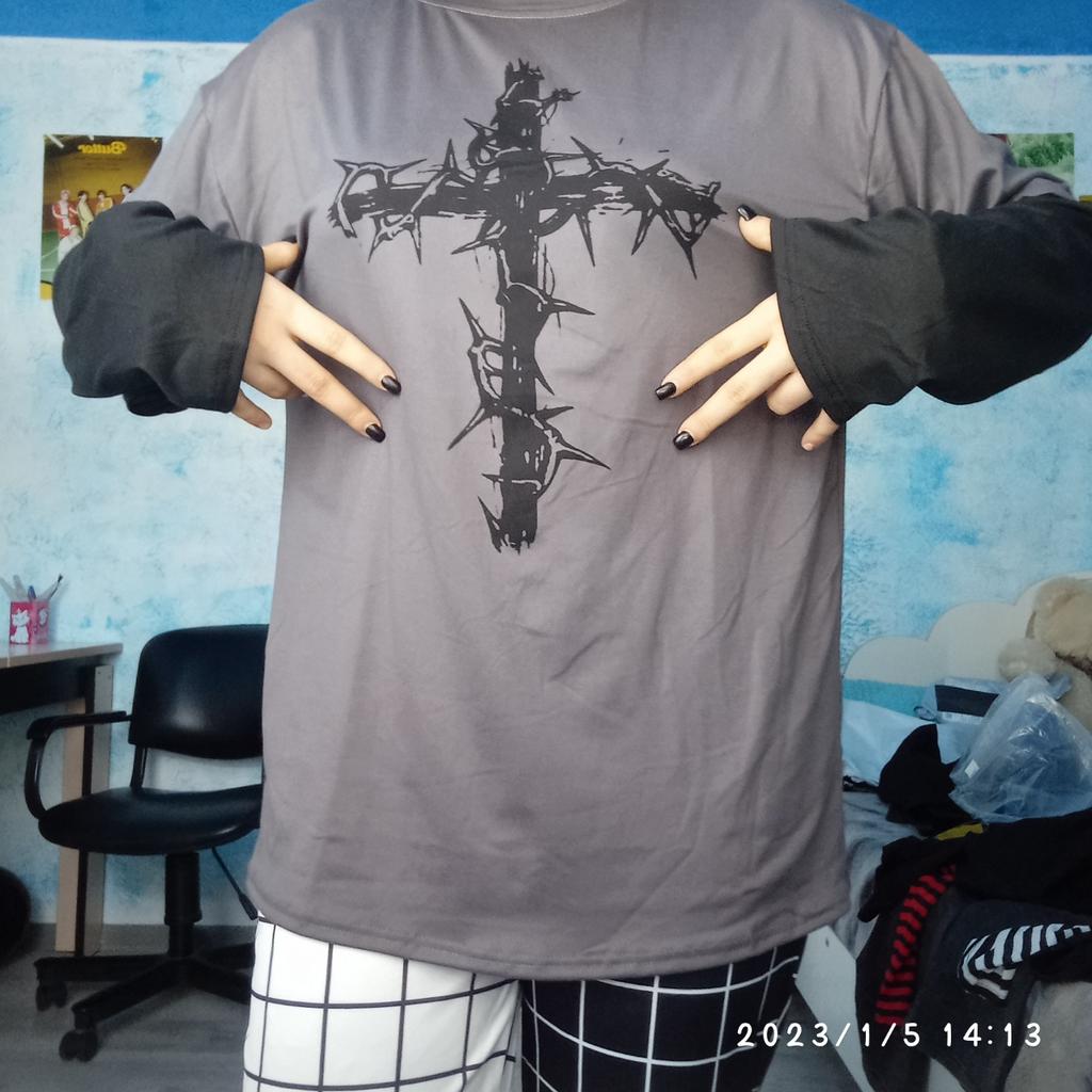 Tricou stil gotic 2022 Mall Goth Topuri punk cu mânecă lungă tricou supradimensionat japonez Streetwear Moda stil coreean