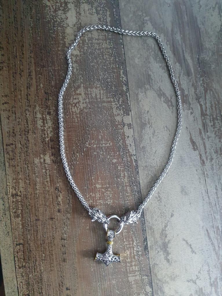 Lanț de oțel cu cap de lup viking din oțel inoxidabil 316L pentru bărbați nordici și colier cu pandantiv Mjolnir cu ciocanul lui Thor, cadou de bijuterii amuletă pentru bărbați vikingi