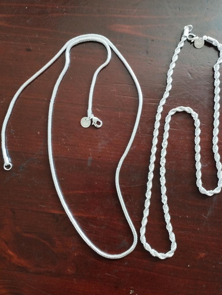 Lanț de frânghie răsucite de 16/18/20/22/24 inch, 4 mm, colier de nuntă din argint 925