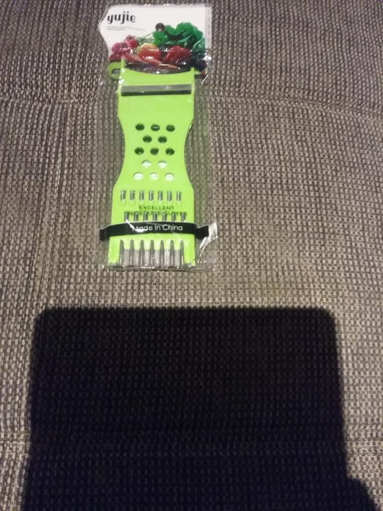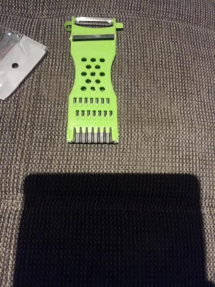 E un miracol nu stiu cat va dura, dar acum sunt foarte multumit! 2 răzătoare, un tăietor bine modelat și, de asemenea, o feliătoare și totul într-un singur articol mic! Singurul lucru este că decojitorul de legume de sus este puțin incomod, dar este grozav!