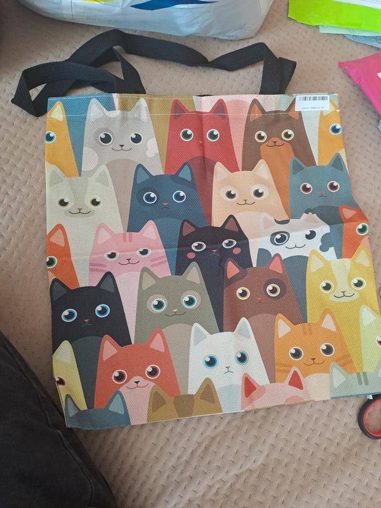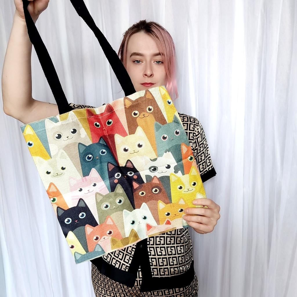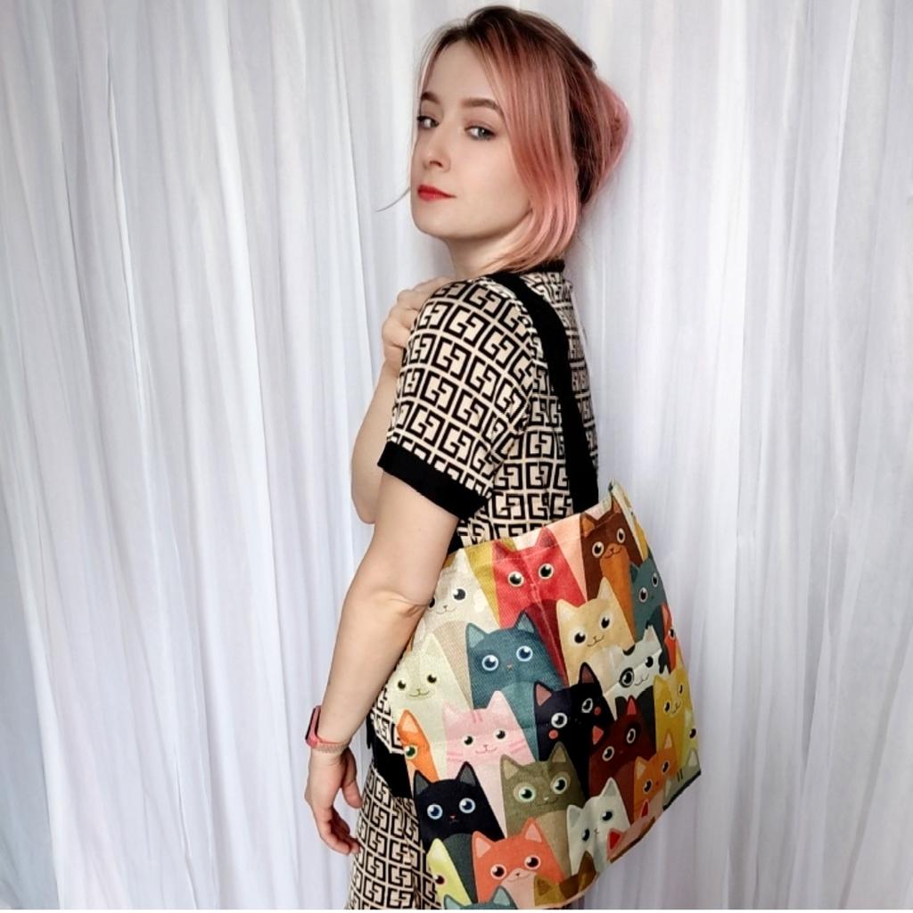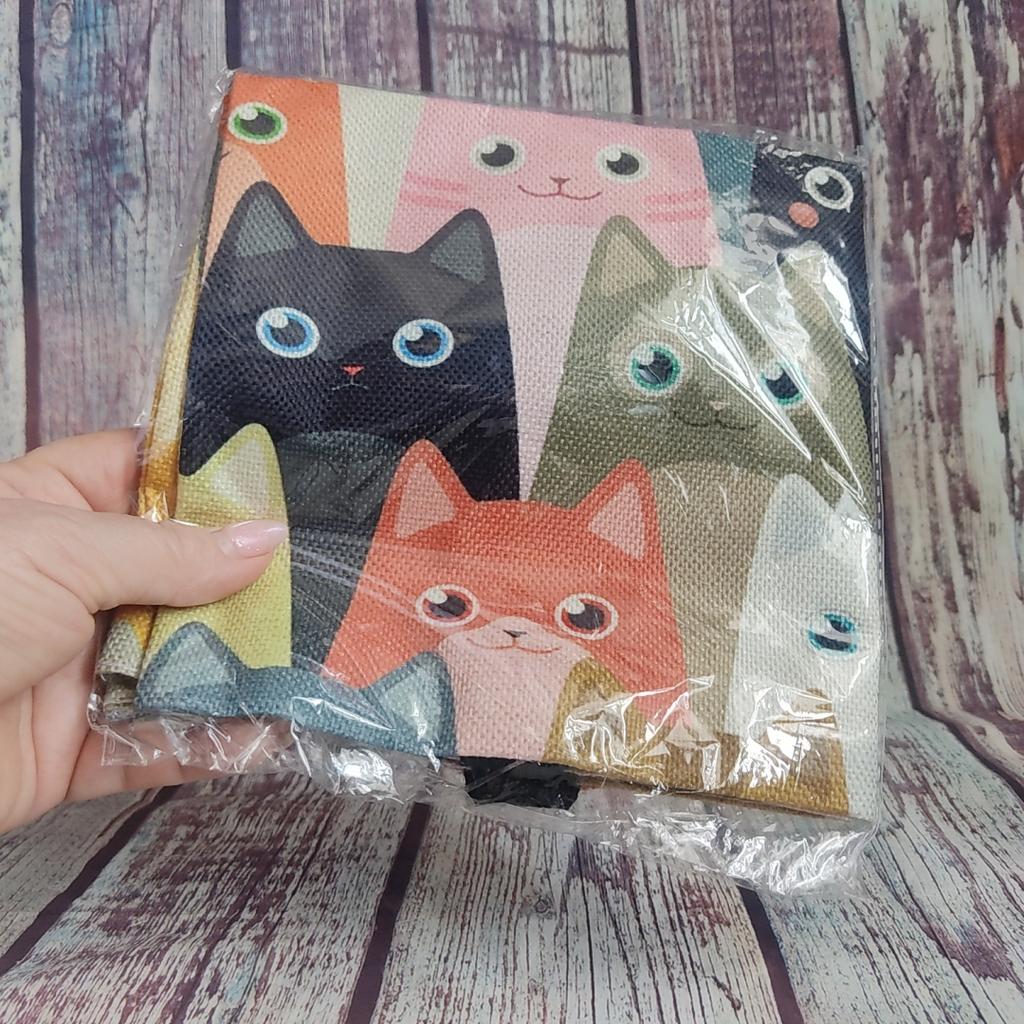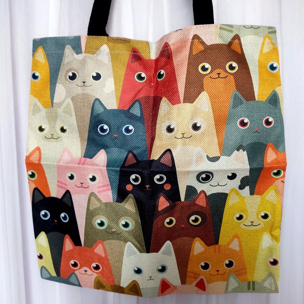 Genți de mână pentru femei, din in, cu imprimeu de pisici de familie, genți cadou de călătorie pentru plajă