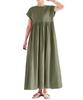 * Features: Comfortable straight fit tea-length dress with Gathered waist, detailed cut-out sleeve, and round neck.