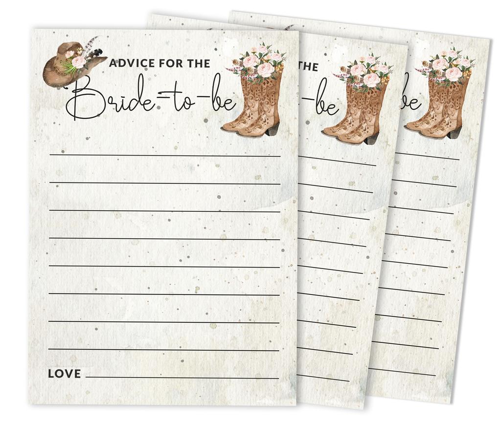 * Give each shower guest this advice card and see what funny responses they come up with for these real-life marriage situations.Pthe perfect activity for bridal showers as it Easily allows guests to leave advice and wishes for the bride to be.Our 5 x 7 inches advice cards are printed on high-quality thick 40 LBS card stock. We use Uncoated paper, which is the best for smudge-less writing.