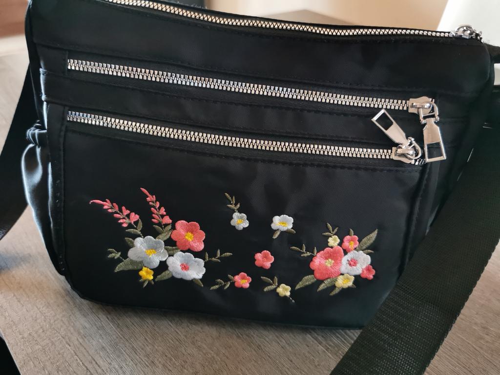 Yogodlns Geantă de damă cu umăr brodat la modă, geantă de nailon florală, geantă de mesager multifuncțională, geantă de telefon pentru cumpărături