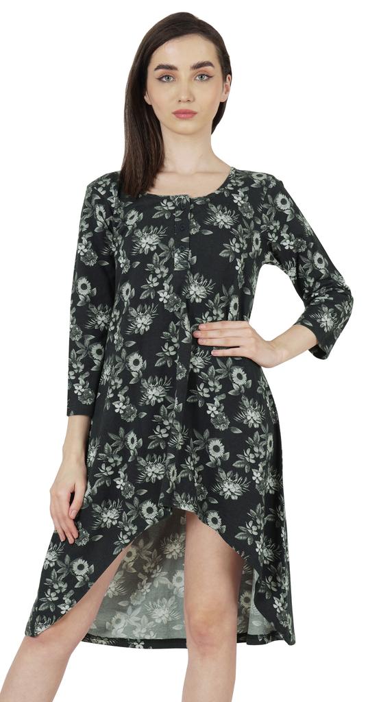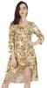 *Caracteristici: țesătură confortabilă, model imprimat, gât rotund, mâneci 3 4, lungime deasupra genunchiului, plăcuță cu nasturi în față, tiv asimetric, neregulat.