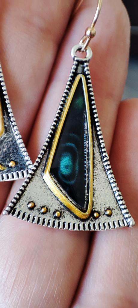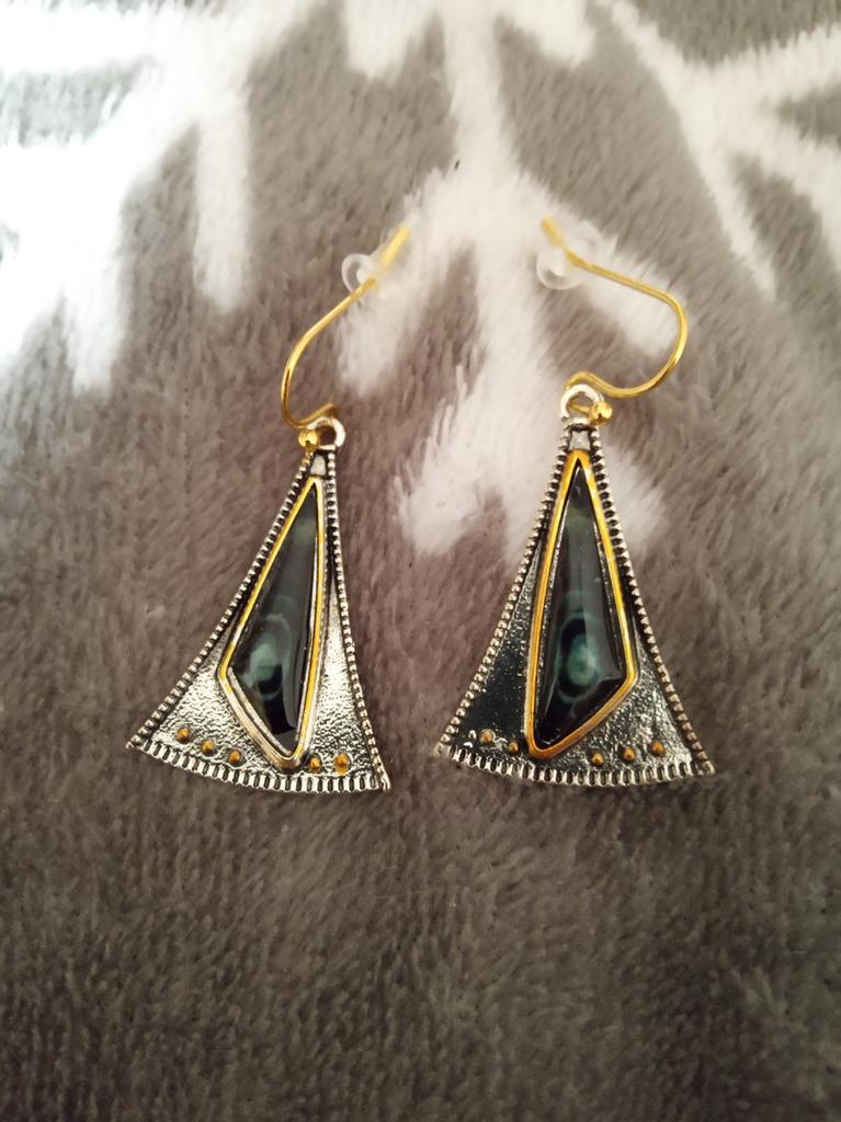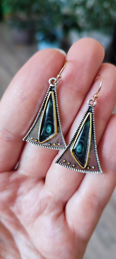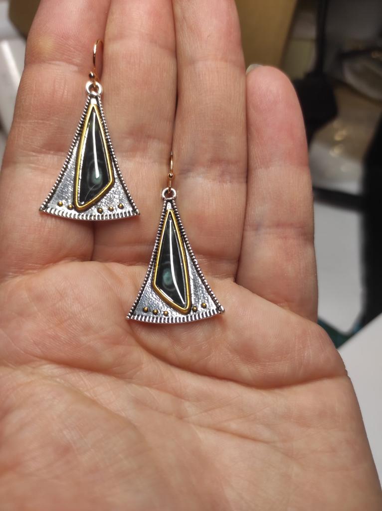 Cercei cu piatră verde triunghi vintage Cercei cu picătură geometrică tribală pentru femei Pendientes Mujer