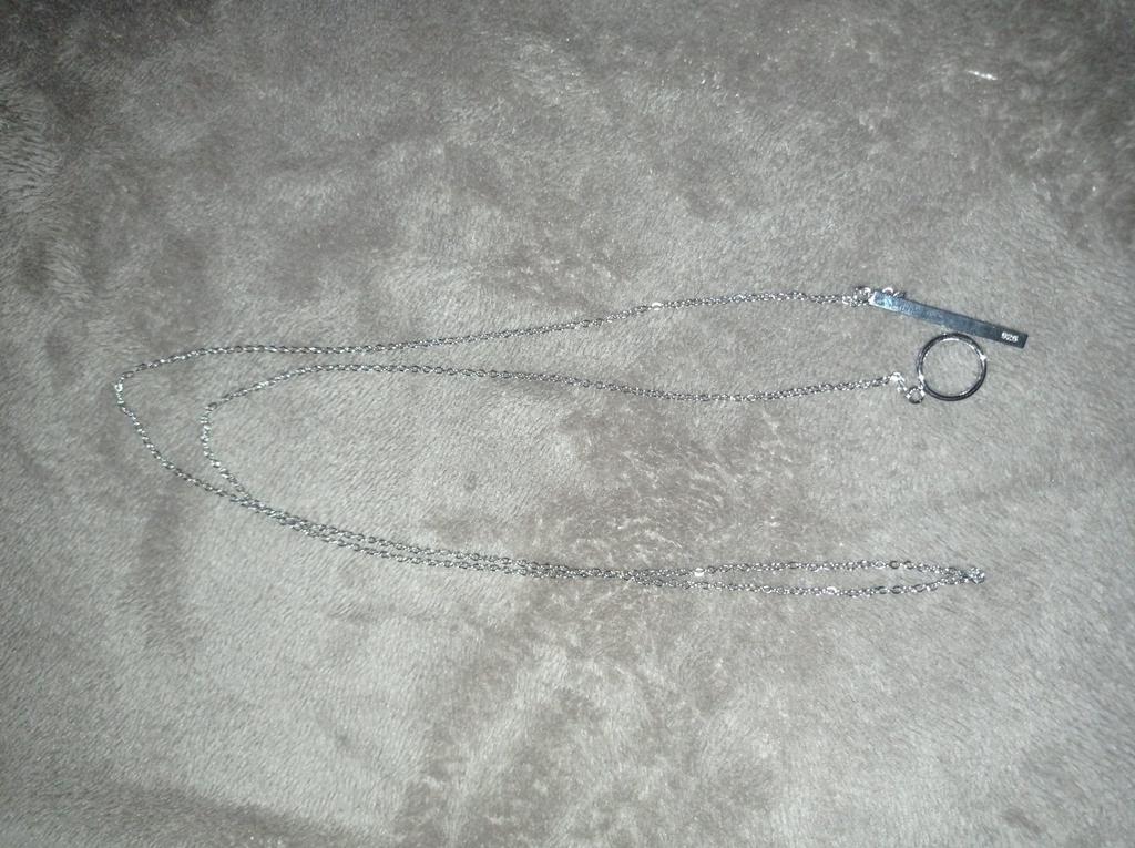 Pandantivul este mișto, puțin lung, iar dacă îl îndoiți de două ori se răsucește puțin pe gât, dar totuși rece, argintiu, nu pare să se întunece