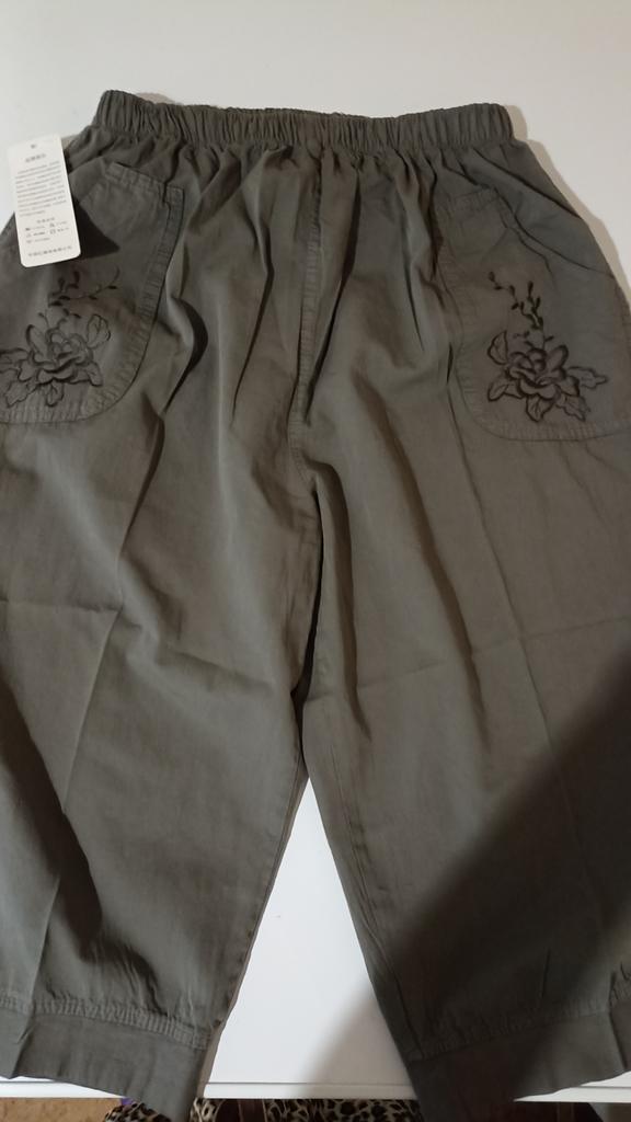 De vârstă mijlocie și vârstnici de vară cu talie elastică pantaloni drepți pentru femei cu talie înaltă Pantaloni tăiați din bumbac spălat de dimensiuni mari