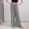 Pantaloni de vară din mătase de gheață pentru fete Pantaloni ocazional uni pentru copii Haine pentru copii, pantaloni lați cu șnur cu talie mijlocie elastică