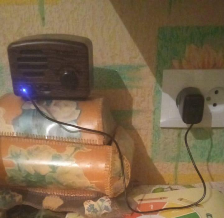 Comanda a sosit radio și cablu. Am cumpărat singuri adaptorul. Am conectat adaptorul la priză și acum radioul se încarcă. 🙏