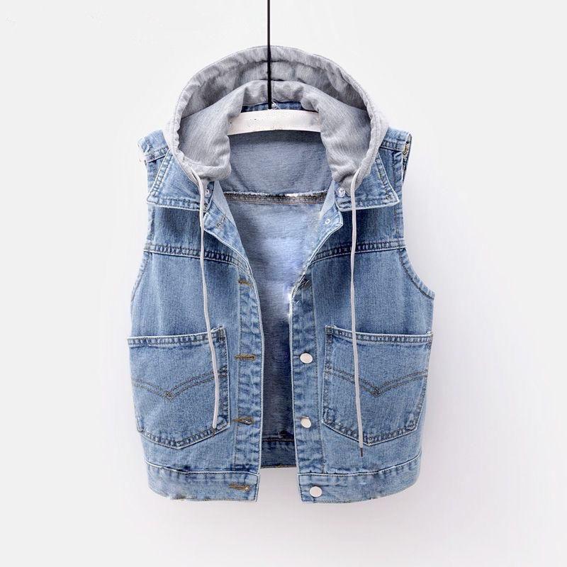 Jachetă de blugi cu glugă, la modă pentru femei, vestă, vestă, scurtă, fără mâneci