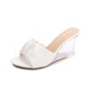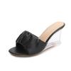 Cristal de apă sexy de vară 8 cm papuci cu toc înalt transparent cu pană de sticlă din piele lăcuită LFD-1098-71
