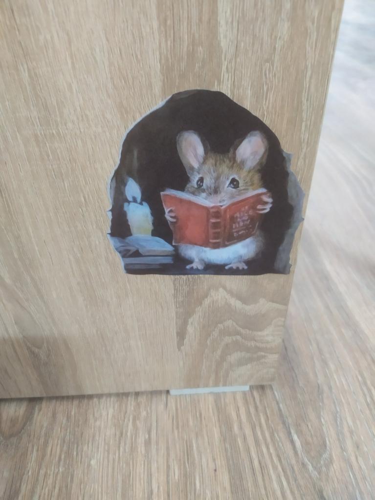 E drăguț, un șoricel, care citește 🙂. A venit bine ambalat, se lipește ușor. Sunt mulțumită.