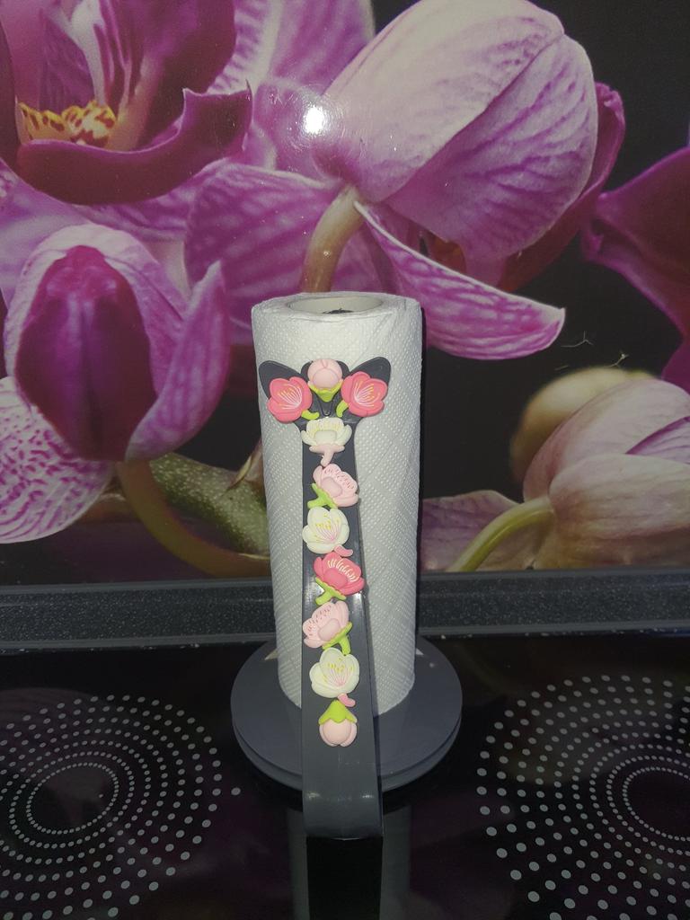 Am luat un suport pentru prosoape pentru decor. Florile sunt din plastic dur. Micuți îngrijiți. 3 albe, 3 roz intens, 3 roz pal și 2 muguri. Până acum rezistă grozav. Suprafața este ca și mată, datorită acestei aderențe excelente la lipici și la suprafață.