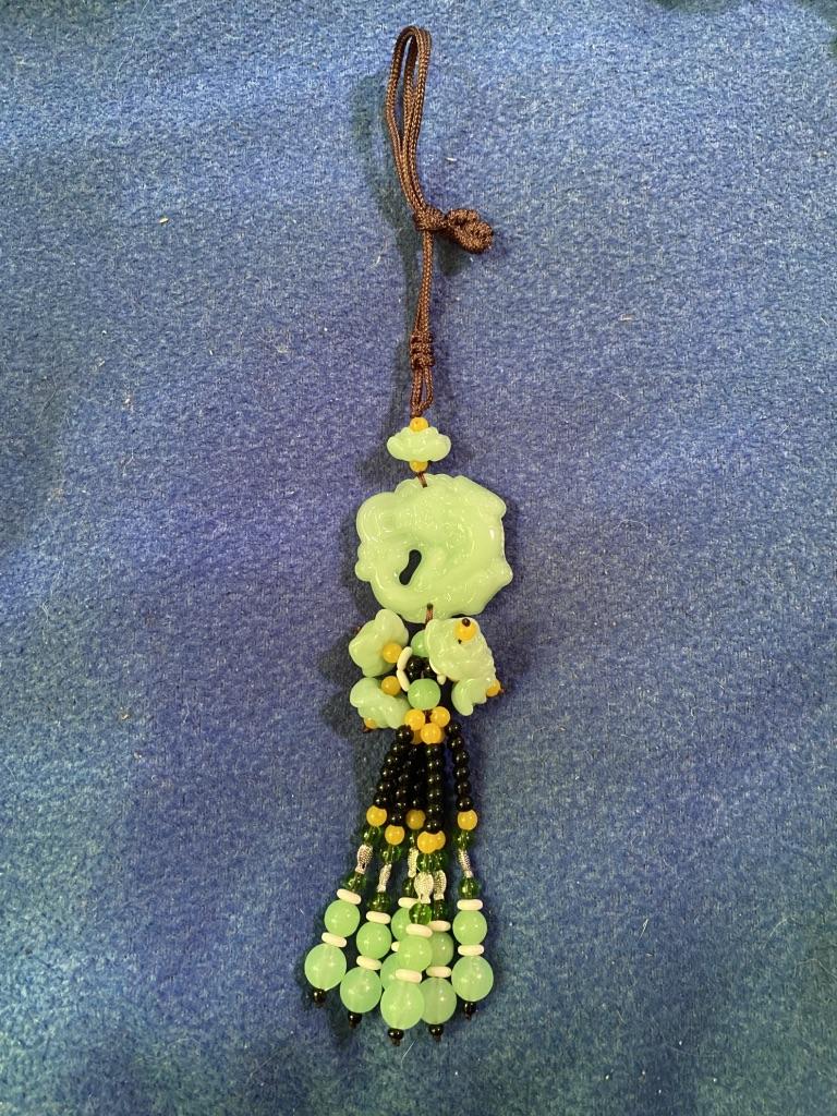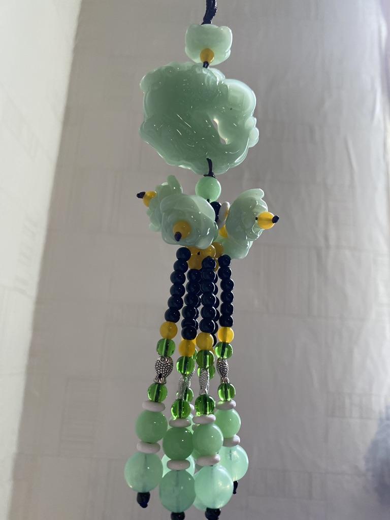 Acasă Breloc cu pandantiv din jad verde pandantiv cu noroc Amuleta norocos Lucru manual Pandantiv obsidian natural