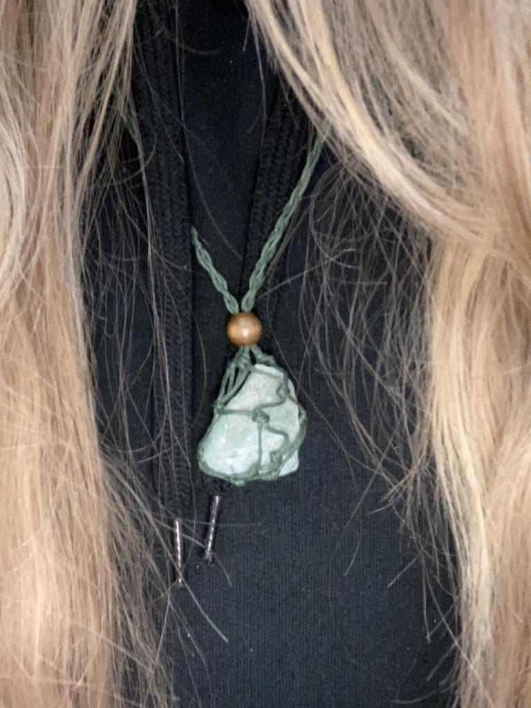 Piatra naturala in ambalajul original in jurul gatului, ca un pandantiv