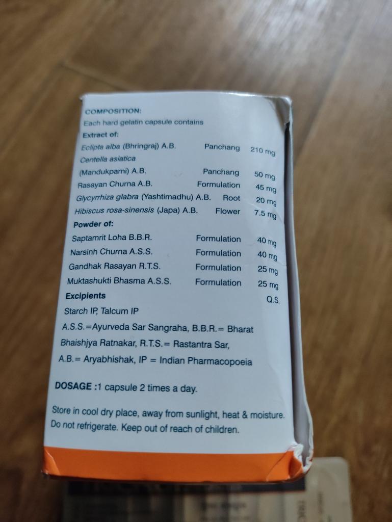 Produs bun. Efectiv. Funcțional, fără efecte secundare. Substanța activă principală--- Bringaraja (Eclipta Alba) 210mg. Se poate cumpăra separat, și trebuie cui are nevoie. Mulțumiri.