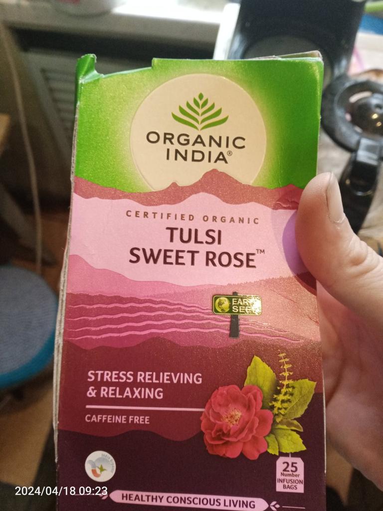 Ceai cu Tulsi și Trandafir (25 pachete, 1,6 g), Tulsi Sweet Rose Organic India