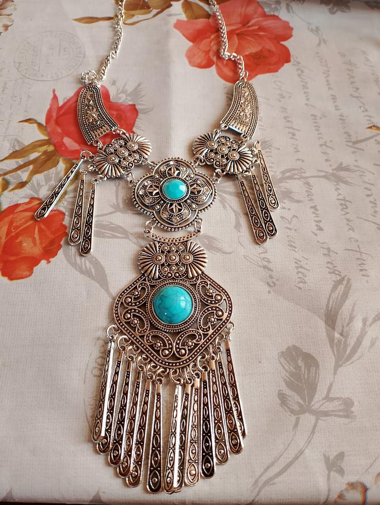 Foarte misto colierul. Nu grea, frumoasă, în stil etnic. Pentru costume și rochii ușoare de vară. Mulțumesc!