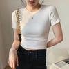 Tricou crop top alb casual de bază Tricou elegant cu mânecă scurtă pentru femei Top High Street Tricouri din bumbac femei vară