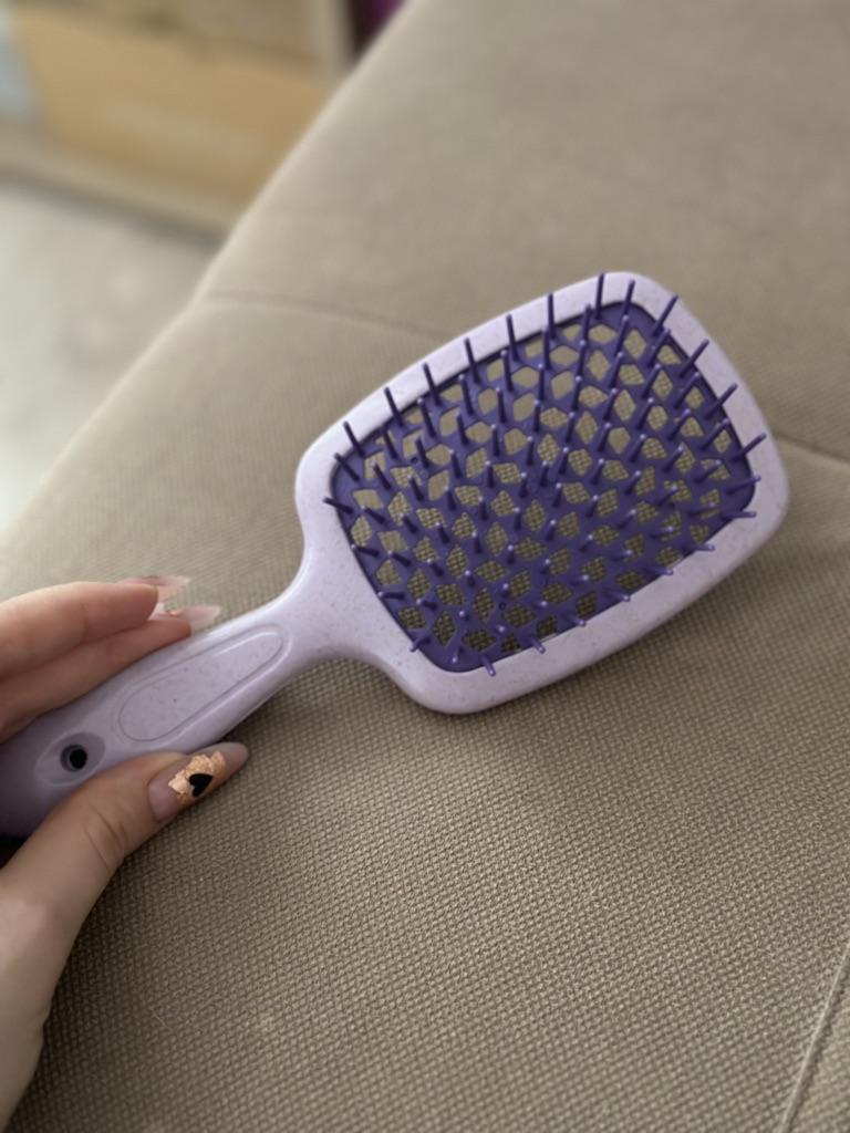 Frumos pieptene. Nu este foarte moale. Dar nici dur. Am scalpul sensibil. Mi se potriveste. Mulțumesc